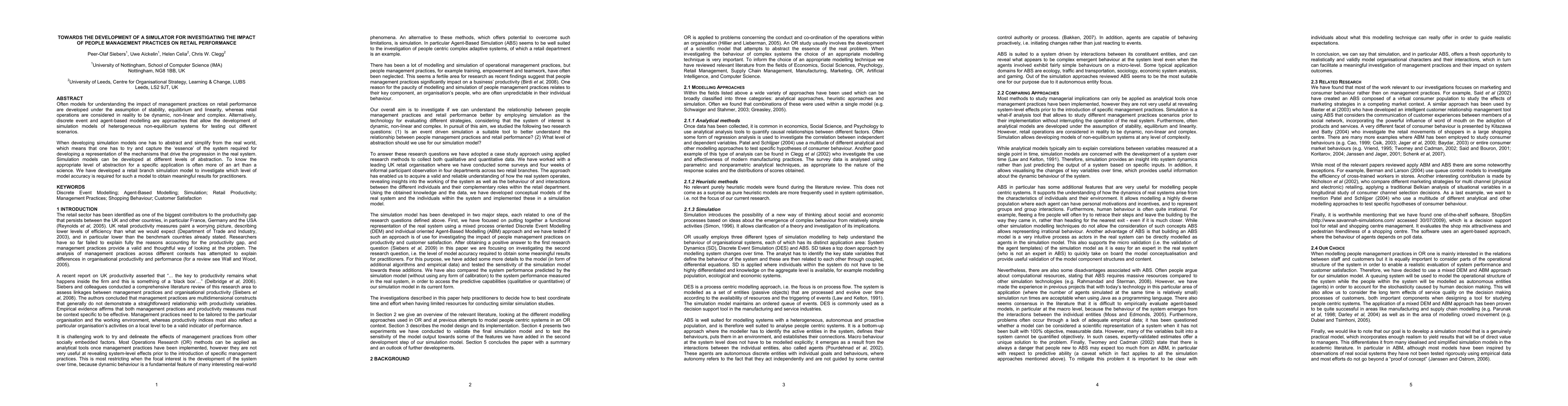 This paper develops a simulator to explore the impact of people management practices on retail performance, moving beyond traditional linear models to accommodate the dynamic, non-linear nature of retail operations. The study investigates the optimal level of abstraction for simulation models to yield meaningful results for practitioners.
