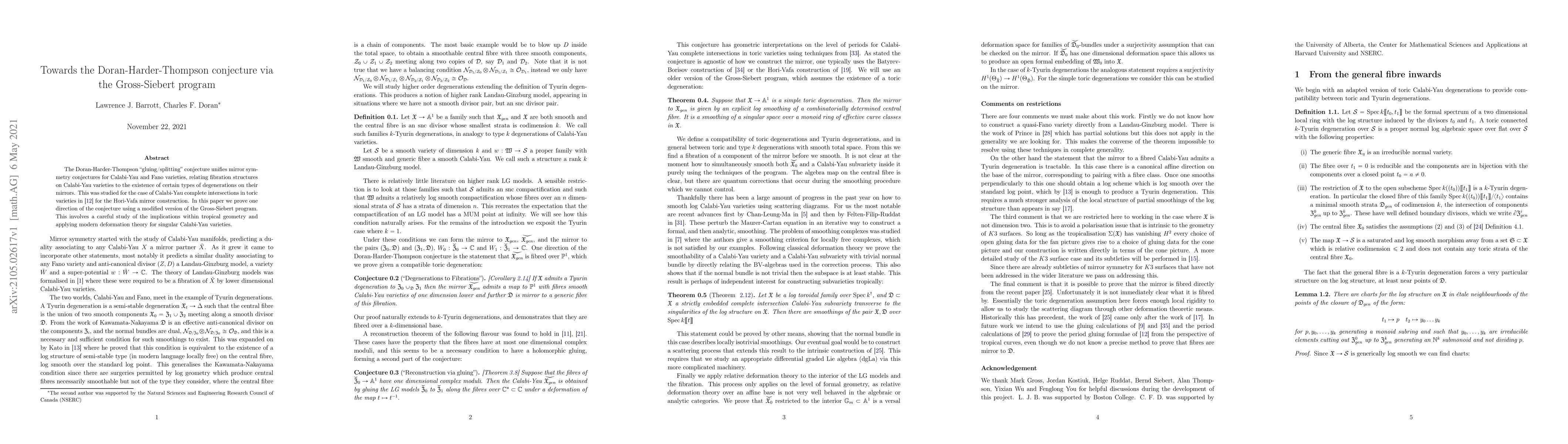 This paper proves one direction of the Doran-Harder-Thompson conjecture using a modified Gross-Siebert program, focusing on the implications within tropical geometry and employing modern deformation theory for singular Calabi-Yau varieties.