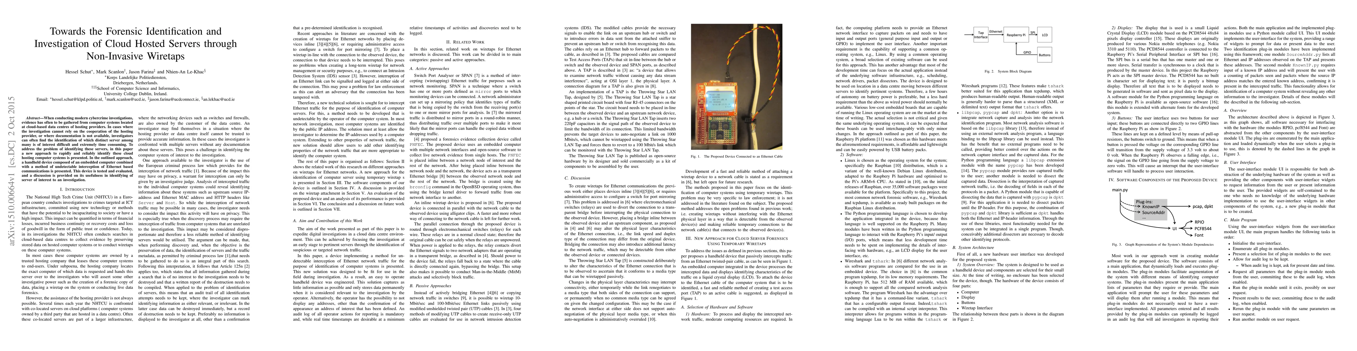 When conducting modern cybercrime investigations, evidence has often to be gathered from computer systems located at cloud-based data centres of hosting providers. In cases where the investigation cannot rely on the cooperation of the hosting provider, or where documentation is not available, investigators can often find the identification of which distinct server among many is of interest difficult and extremely time consuming. To address the problem of identifying these servers, in this paper a new approach to rapidly and reliably identify these cloud hosting computer systems is presented. In the outlined approach, a handheld device composed of an embedded computer combined with a method of undetectable interception of Ethernet based communications is presented. This device is tested and evaluated, and a discussion is provided on its usefulness in identifying of server of interest to an investigation.