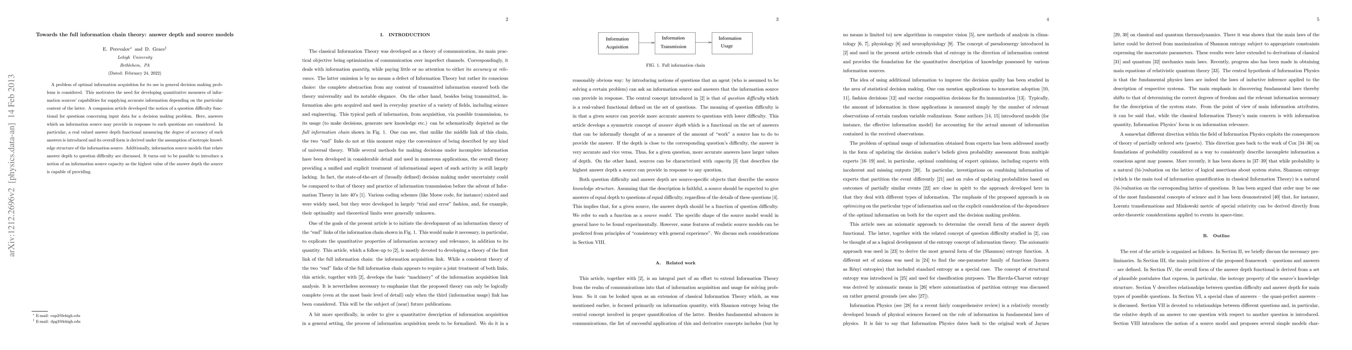 A problem of optimal information acquisition for its use in general decision making problems is considered. This motivates the need for developing quantitative measures of information sources' capabilities for supplying accurate information depending on the particular content of the latter. A companion article developed the notion of a question difficulty functional for questions concerning input data for a decision making problem. Here, answers which an information source may provide in response to such questions are considered. In particular, a real valued answer depth functional measuring the degree of accuracy of such answers is introduced and its overall form is derived under the assumption of isotropic knowledge structure of the information source. Additionally, information source models that relate answer depth to question difficulty are discussed. It turns out to be possible to introduce a notion of an information source capacity as the highest value of the answer depth the source is capable of providing.