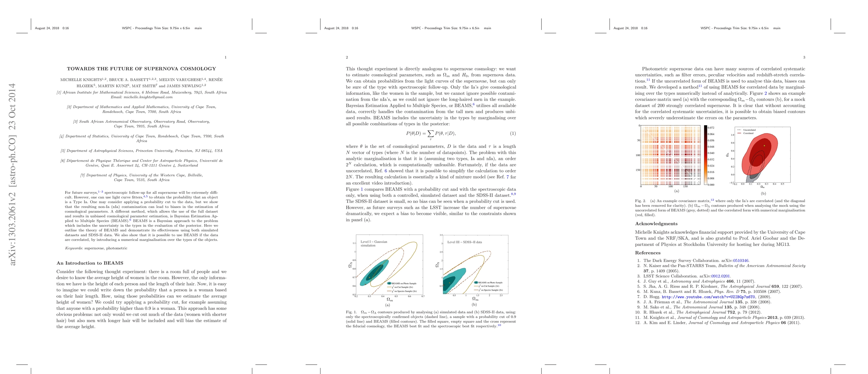 For future surveys, spectroscopic follow-up for all supernovae will be extremely difficult. However, one can use light curve fitters, to obtain the probability that an object is a Type Ia. One may consider applying a probability cut to the data, but we show that the resulting non-Ia contamination can lead to biases in the estimation of cosmological parameters. A different method, which allows the use of the full dataset and results in unbiased cosmological parameter estimation, is Bayesian Estimation Applied to Multiple Species (BEAMS). BEAMS is a Bayesian approach to the problem which includes the uncertainty in the types in the evaluation of the posterior. Here we outline the theory of BEAMS and demonstrate its effectiveness using both simulated datasets and SDSS-II data. We also show that it is possible to use BEAMS if the data are correlated, by introducing a numerical marginalisation over the types of the objects. This is largely a pedagogical introduction to BEAMS with references to the main BEAMS papers.