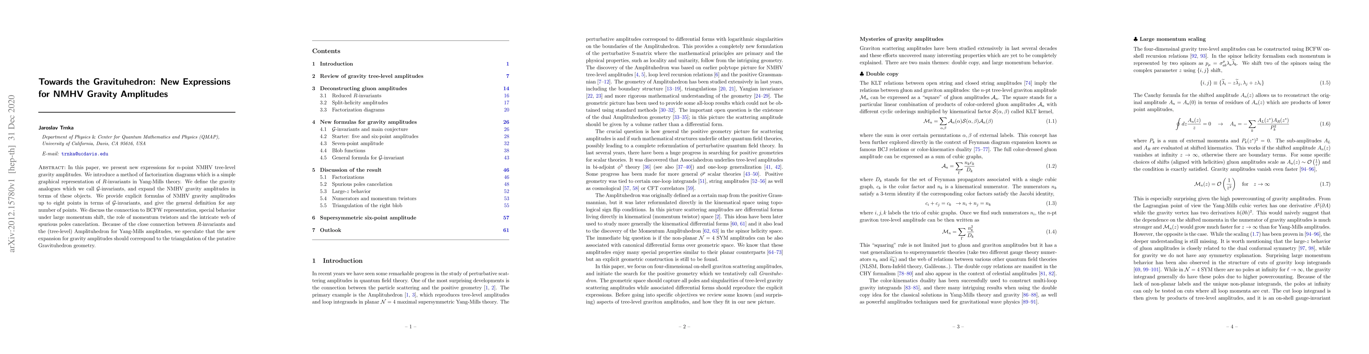 In this paper, we present new expressions for n-point NMHV tree-level gravity amplitudes. We introduce a method of factorization diagrams which is a simple graphical representation of R-invariants in Yang-Mills theory. We define the gravity analogues which we call G-invariants, and expand the NMHV gravity amplitudes in terms of these objects. We provide explicit formulas of NMHV gravity amplitudes up to eight points in terms of G-invariants, and give the general definition for any number of points. We discuss the connection to BCFW representation, special behavior under large momentum shift, the role of momentum twistors and the intricate web of spurious poles cancelation. Because of the close connection between R-invariants and the (tree-level) Amplituhedron for Yang-Mills amplitudes, we speculate that the new expansion for gravity amplitudes should correspond to the triangulation of the putative Gravituhedron geometry.
