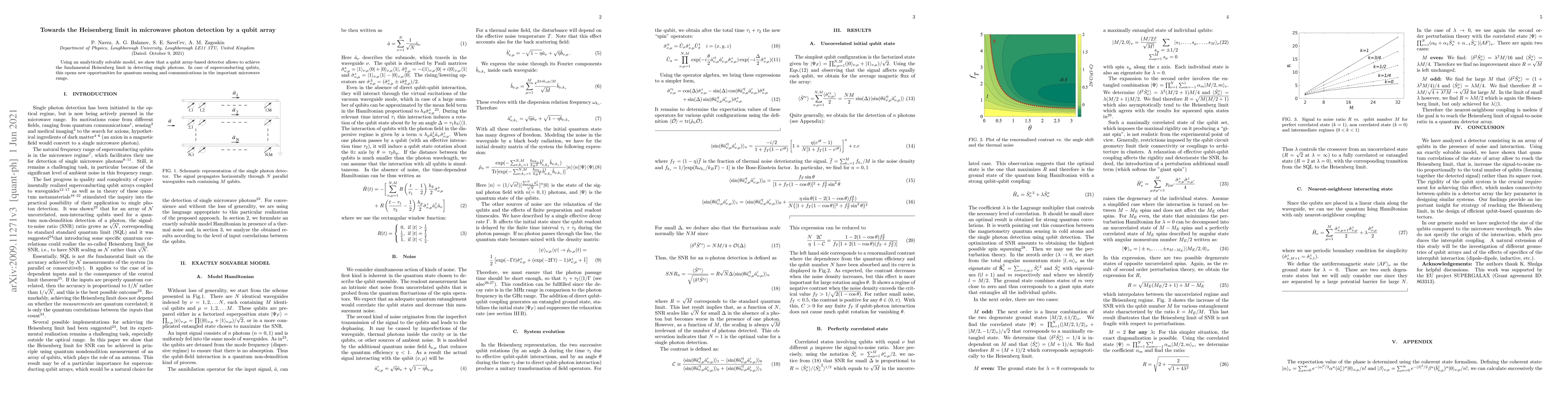 Using an analytically solvable model, we show that a qubit array-based detector allows to achieve the fundamental Heisenberg limit in detecting single photons. In case of superconducting qubits, this opens new opportunities for quantum sensing and communications in the important microwave range.