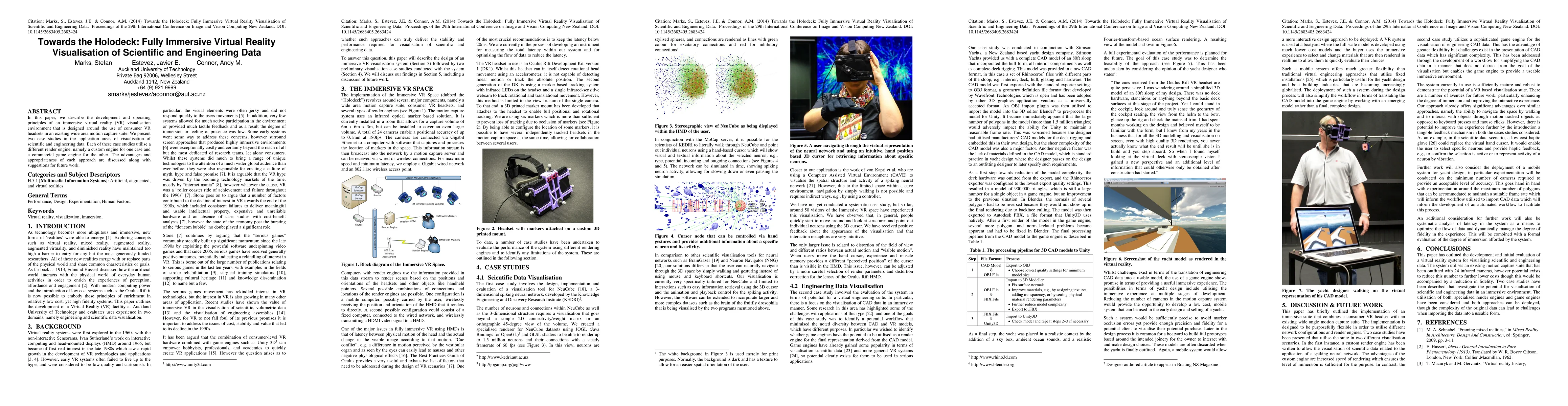 This paper details the creation of an immersive VR environment using consumer headsets within a motion capture suite for scientific and engineering data visualisation. It compares custom and commercial render engines in two case studies, discussing their respective benefits and future directions.