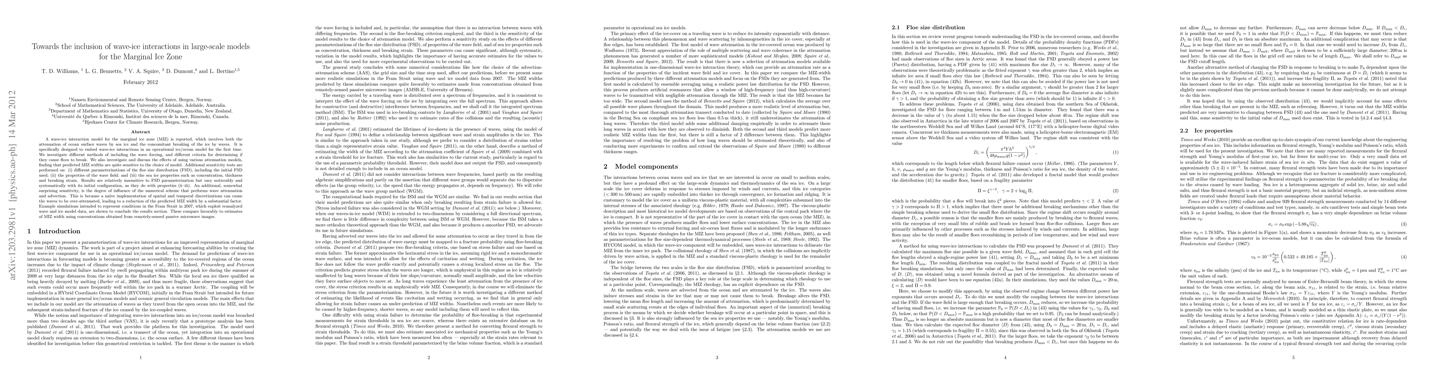This paper develops a wave-ice interaction model for the Marginal Ice Zone (MIZ) to incorporate wave attenuation by sea ice and wave-induced ice breaking into large-scale models. The study finds that the model's predictions are sensitive to the chosen attenuation model, wave field properties, and sea ice characteristics, with particular attention to the numerical scheme used for wave attenuation and advection.
