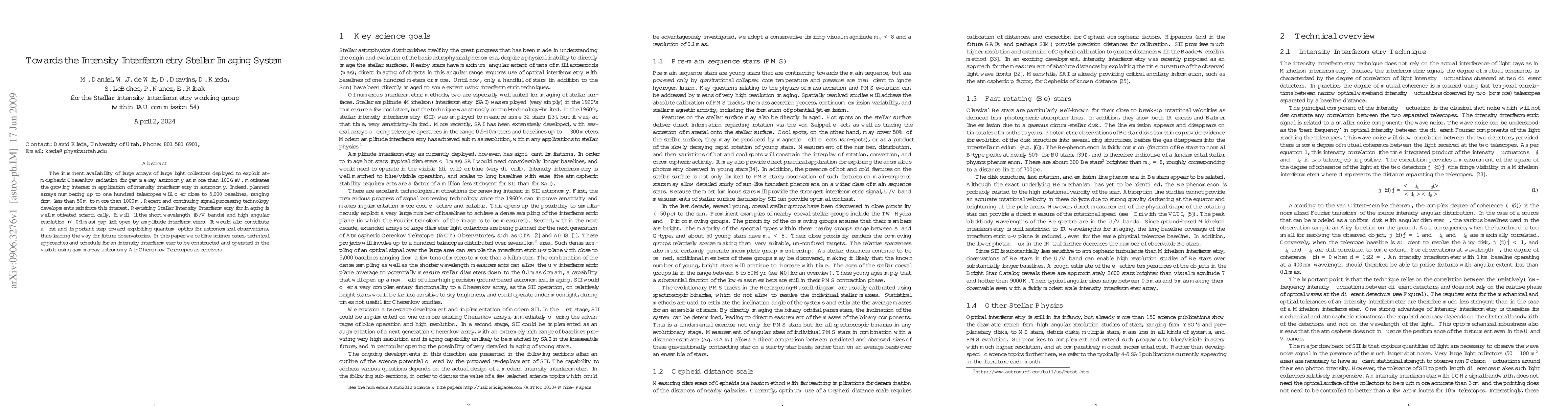 The imminent availability of large arrays of large light collectors deployed to exploit atmospheric Cherenkov radiation for gamma-ray astronomy at more than 100GeV, motivates the growing interest in application of intensity interferometry in astronomy. Indeed, planned arrays numbering up to one hundred telescopes will offer close to 5,000 baselines, ranging from less than 50m to more than 1000m. Recent and continuing signal processing technology developments reinforce this interest. Revisiting Stellar Intensity Interferometry for imaging is well motivated scientifically. It will fill the short wavelength (B/V bands) and high angular resolution (< 0.1mas) gap left open by amplitude interferometers. It would also constitute a first and important step toward exploiting quantum optics for astronomical observations, thus leading the way for future observatories. In this paper we outline science cases, technical approaches and schedule for an intensity interferometer to be constructed and operated in the visible using gamma-ray astronomy Air Cherenkov Telescopes as receivers.