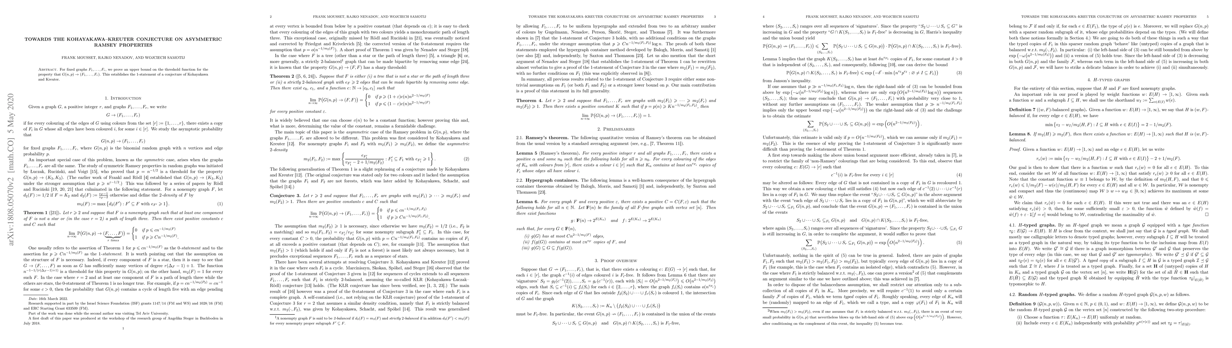 Researchers prove an upper bound for a graph property known as asymmetric Ramsey properties, establishing a key finding in a conjecture by Kohayakawa and Kreuter.