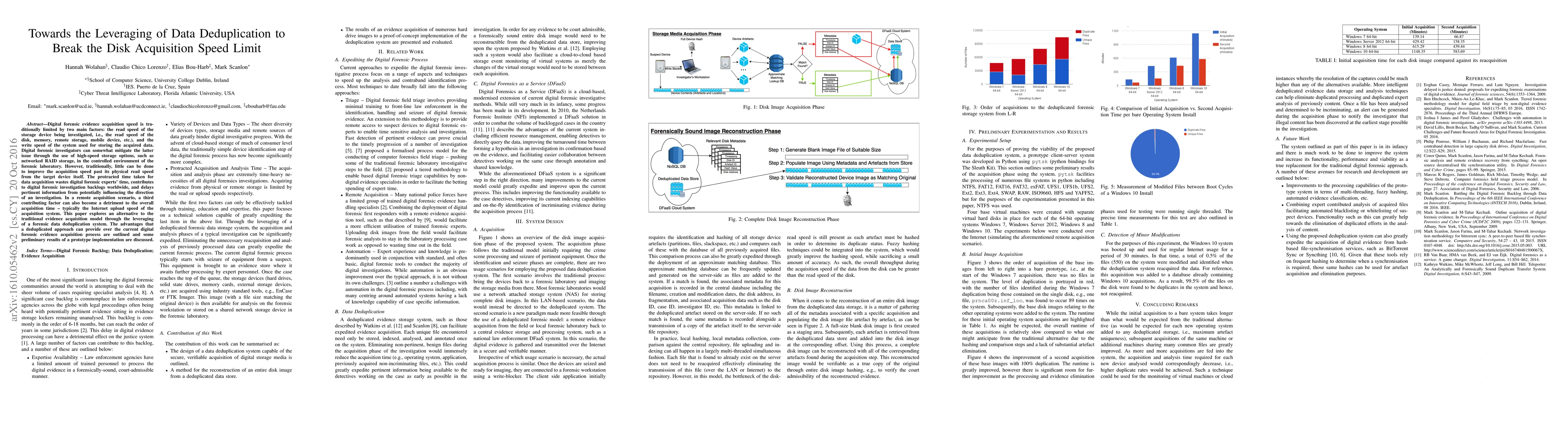 Digital forensic evidence acquisition speed is traditionally limited by two main factors: the read speed of the storage device being investigated, i.e., the read speed of the disk, memory, remote storage, mobile device, etc.), and the write speed of the system used for storing the acquired data. Digital forensic investigators can somewhat mitigate the latter issue through the use of high-speed storage options, such as networked RAID storage, in the controlled environment of the forensic laboratory. However, traditionally, little can be done to improve the acquisition speed past its physical read speed from the target device itself. The protracted time taken for data acquisition wastes digital forensic experts' time, contributes to digital forensic investigation backlogs worldwide, and delays pertinent information from potentially influencing the direction of an investigation. In a remote acquisition scenario, a third contributing factor can also become a detriment to the overall acquisition time - typically the Internet upload speed of the acquisition system. This paper explores an alternative to the traditional evidence acquisition model through the leveraging of a forensic data deduplication system. The advantages that a deduplicated approach can provide over the current digital forensic evidence acquisition process are outlined and some preliminary results of a prototype implementation are discussed.