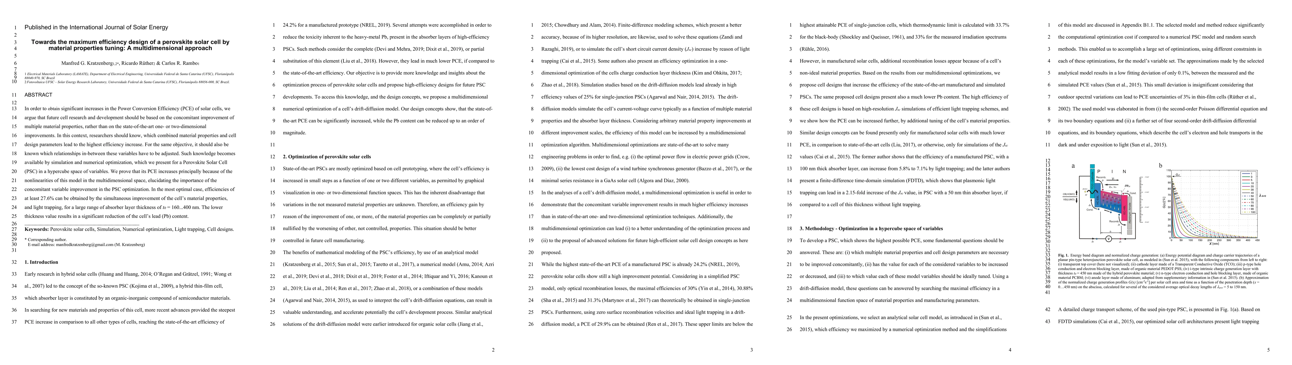 To obtain significant increases in the Power Conversion Efficiency (PCE) of solar cells, future cell research and development should be based on the concomitant improvement of multiple material properties, rather than on the state-of-the-art one or two-dimensional improvements. In this context, researchers should know, which combined material properties and cell design parameters lead to the highest efficiency increase. For the same objective, it should also be known which relationships in-between these variables have to be adjusted. Such knowledge becomes available by simulation and numerical optimization, which we present for a Perovskite Solar Cell(PSC)in a hypercube space of variables.