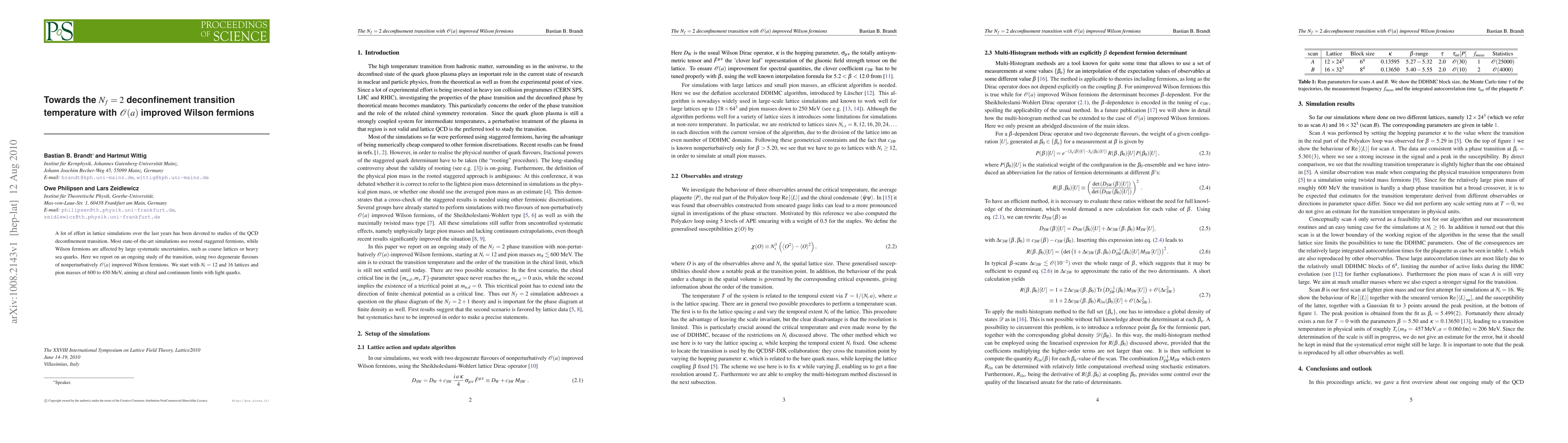 A lot of effort in lattice simulations over the last years has been devoted to studies of the QCD deconfinement transition. Most state-of-the-art simulations use rooted staggered fermions, while Wilson fermions are affected by large systematic uncertainties, such as coarse lattices or heavy sea quarks. Here we report on an ongoing study of the transition, using two degenerate flavours of nonperturbatively $\Ord(a)$ improved Wilson fermions. We start with $N_{t}=12$ and 16 lattices and pion masses of 600 to 450 MeV, aiming at chiral and continuum limits with light quarks.