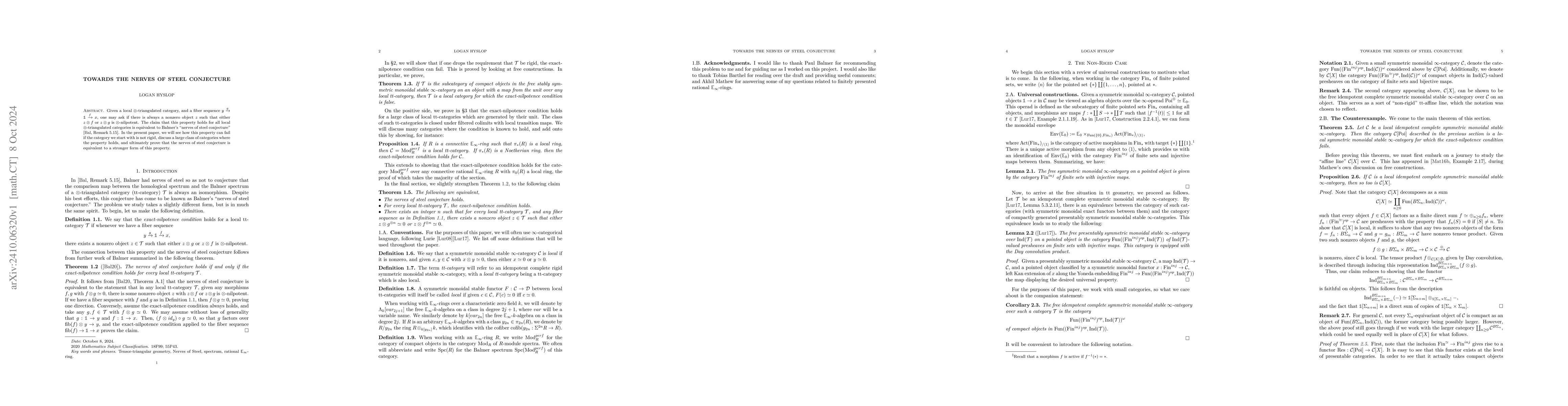 Given a local $\otimes$-triangulated category, and a fiber sequence $y\to 1 \to x$, one may ask if there is always a nonzero object $z$ such that either $z\otimes f$ or $z\otimes g$ is $\otimes$-nilpotent. The claim that this property holds for all local $\otimes$-triangulated categories is equivalent to Balmer's "nerves of steel conjecture" from arXiv:2001.00284. In the present paper, we will see how this property can fail if the category we start with is not rigid, discuss a large class of categories where the property holds, and ultimately prove that the nerves of steel conjecture is equivalent to a stronger form of this property.