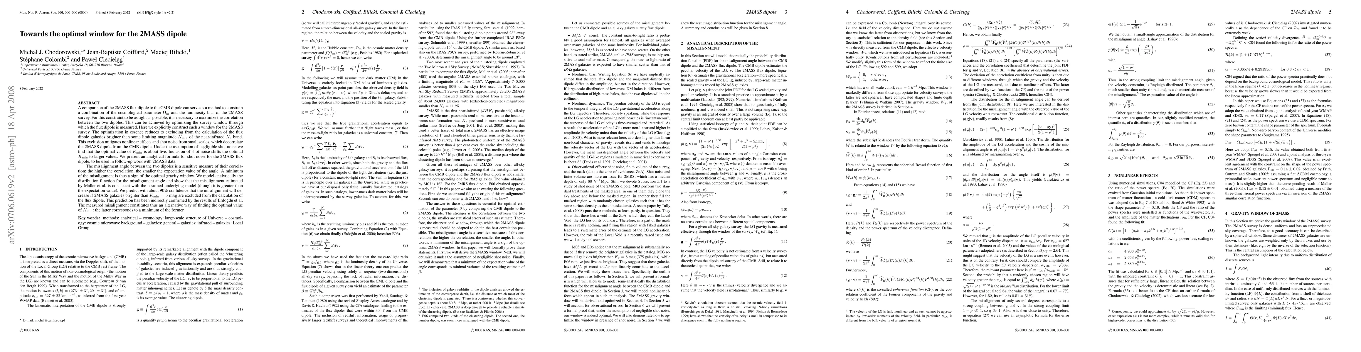 This paper optimizes the window for measuring the 2MASS flux dipole to maximize its correlation with the CMB dipole, aiming to constrain cosmological parameters. The optimal window excludes galaxies brighter than a limiting magnitude K_min of 5 mag, reducing nonlinear effects and shot noise, and predicts a lower misalignment angle with the CMB dipole.
