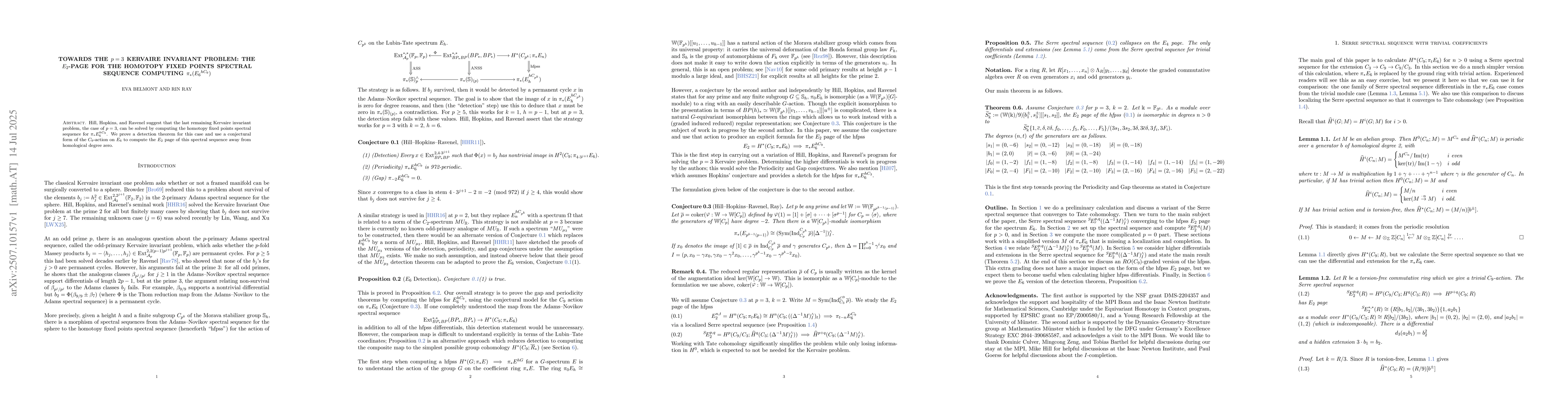 Hill, Hopkins, and Ravenel suggest that the last remaining Kervaire invariant problem, the case of $p=3$, can be solved by computing the homotopy fixed points spectral sequence for $\pi_* E_6^{hC_9}$. We prove a detection theorem for this case and use a conjectural form of the $C_9$-action on $E_6$ to compute the $E_2$ page of this spectral sequence away from homological degree zero.