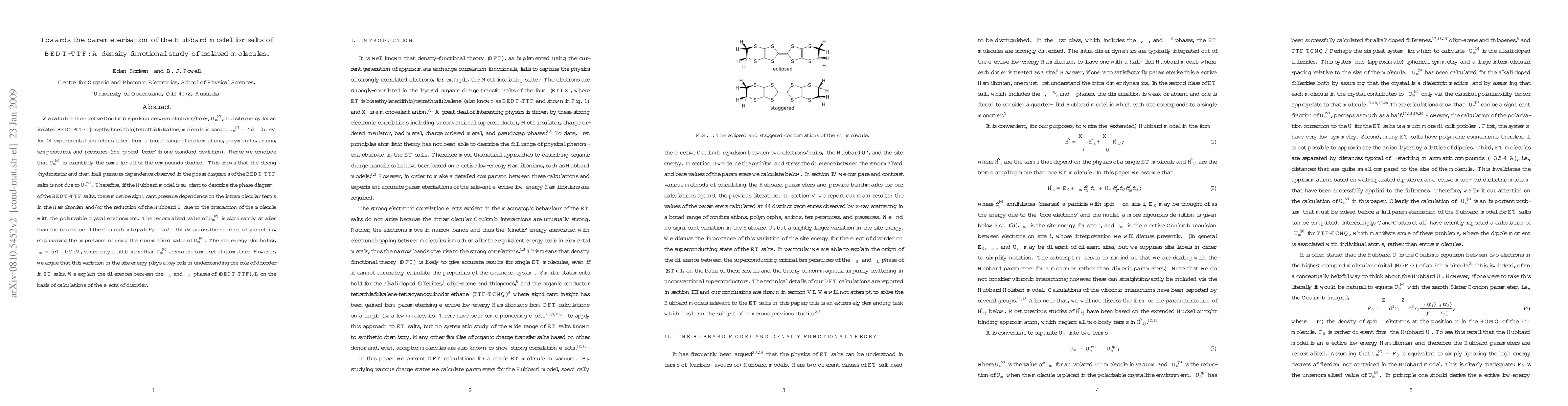 We calculate the effective Coulomb repulsion between electrons/holes, U, and site energy for an isolated BEDT-TTF [bis(ethylenedithio)tetrathiafulvalene] molecule in vacuo. U=4.2 \pm 0.1 eV for 44 experimental geometries taken from a broad range of conformations, polymorphs, anions, temperatures, and pressures (the quoted `error' is one standard deviation). Hence we conclude that U is essentially the same for all of the compounds studied. This shows that the strong (hydrostatic and chemical) pressure dependence observed in the phase diagrams of the BEDT-TTF salts is not due to U. Therefore, if the Hubbard model is sufficient to describe the phase diagram of the BEDT-TTF salts there must be significant pressure dependence on the intramolecular terms in the Hamiltonian and/or the reduction of the Hubbard U due to the interaction of the molecule with the polarisable crystal environment. The renormalised value of U is significantly smaller than the bare value of the Coulomb integral: F_0=5.2\pm0.1 eV across the same set of geometries, emphasising the importance of using the renormalised value of U. The site energy (for holes), xi=5.0\pm0.2 eV, varies only a little more than U across the same set of geometries. However, we argue that this plays a key role in understanding the role of disorder in ET salts in general and in explaining the difference between the beta_L and beta_H phases of beta-(BEDT-TTF)_2I_3 in particular.