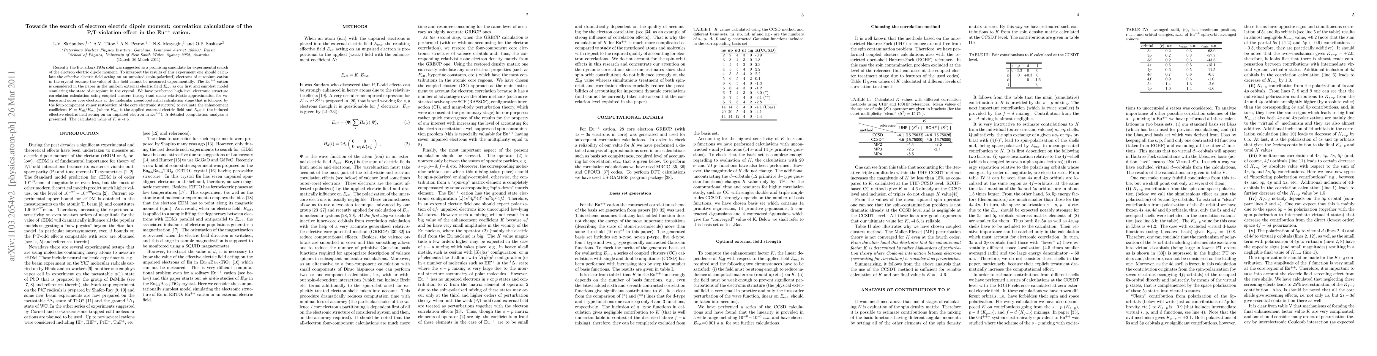 This paper investigates the P,T-violation effect in the Eu$^{++}$ cation using high-level correlation calculations to determine the enhancement coefficient $K$ for the effective electric field acting on the unpaired electron. The calculated value of $K$ is -4.6, providing essential data for interpreting experiments searching for the electron electric dipole moment in Eu$_{0.5}$Ba$_{0.5}$TiO$_{3}$.