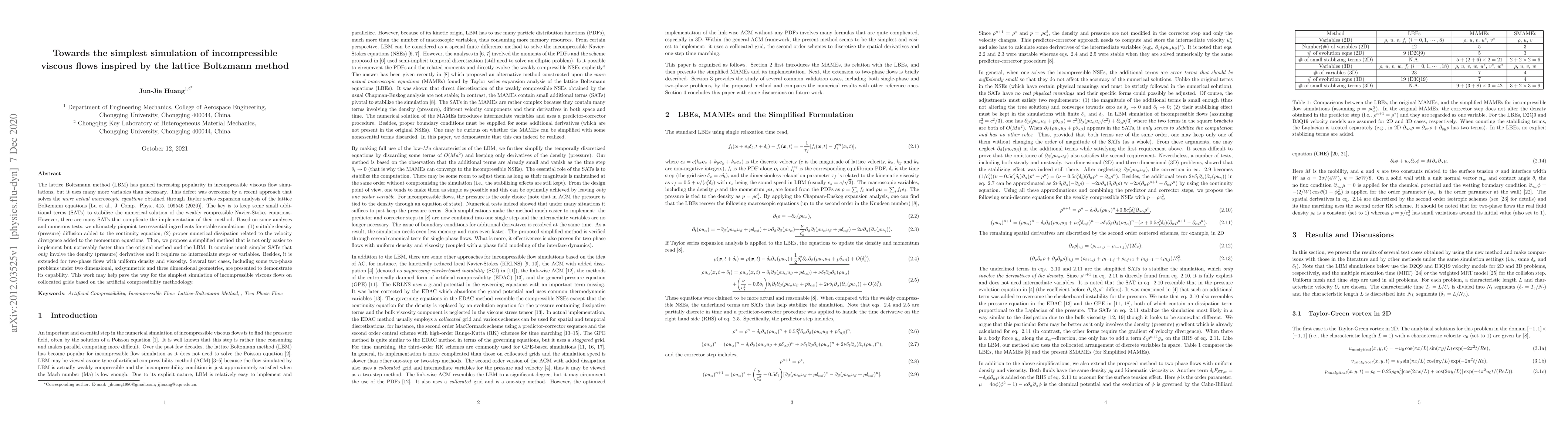 This paper proposes a simplified method to simulate incompressible viscous flows, inspired by the lattice Boltzmann method, by identifying two essential stabilizing terms: density diffusion and numerical dissipation. This new approach is faster and easier to implement than previous methods, requiring no intermediate steps or variables, and extends to two-phase flows.