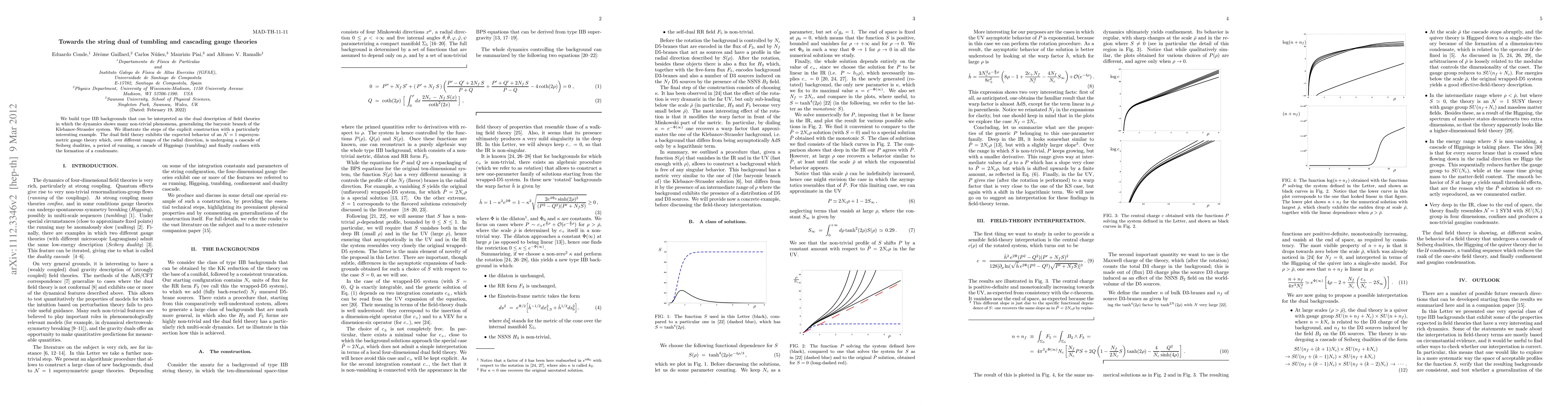We build type IIB backgrounds that can be interpreted as the dual description of field theories in which the dynamics shows many non-trivial phenomena, generalizing the baryonic branch of the Klebanov-Strassler system. We illustrate the steps of the explicit construction with a particularly interesting example. The dual field theory exhibits the expected behavior of an N=1 supersymmetric gauge theory which, over different ranges of the radial direction, is undergoing a cascade of Seiberg dualities, a period of running, a cascade of Higgsings (tumbling) and finally gaugino condensation.