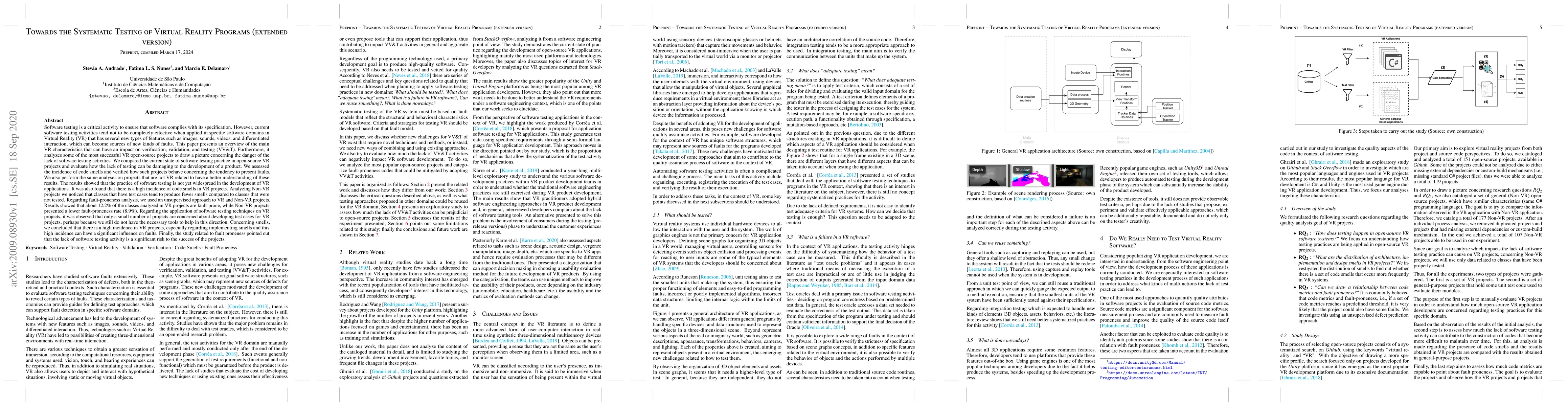 Software testing is a critical activity to ensure that software complies with its specification. However, current software testing activities tend not to be completely effective when applied in specific software domains in Virtual Reality (VR) that has several new types of features such as images, sounds, videos, and differentiated interaction, which can become sources of new kinds of faults. This paper presents an overview of the main VR characteristics that can have an impact on verification, validation, and testing (VV&T). Furthermore, it analyzes some of the most successful VR open-source projects to draw a picture concerning the danger of the lack of software testing activities. We compared the current state of software testing practice in open-source VR projects and evaluate how the lack of testing can be damaging to the development of a product. We assessed the incidence of code smells and verified how such projects behave concerning the tendency to present faults. The results showed that the practice of software testing is not yet widespread in the development of VR applications. It was also found that there is a high incidence of code smells in VR projects. Regarding fault-proneness the results showed that about 12.2% of the classes analyzed in VR projects are fault-prone. Regarding the application of software testing techniques on VR projects, it was observed that only a small number of projects are concerned about developing test cases for VR projects, perhaps because we still do not have the necessary tools to help in this direction. Concerning smells, we concluded that there is a high incidence in VR projects, especially regarding implementing smells and this high incidence can have a significant influence on faults. Finally, the study related to fault proneness pointed out that the lack of software testing activity is a significant risk to the success of the projects.