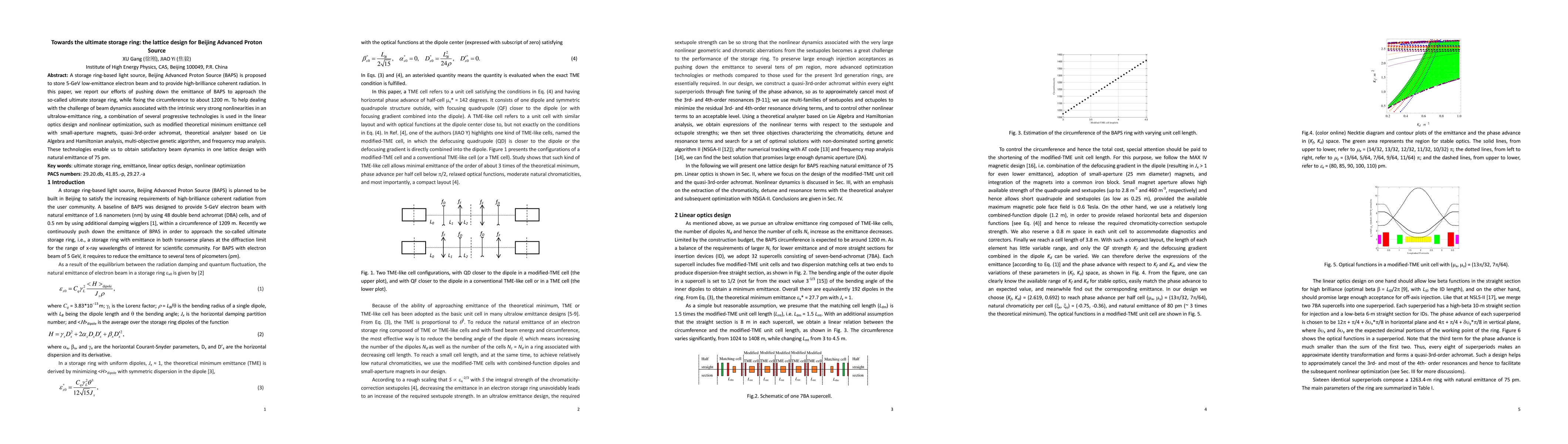 A storage ring-based light source, Beijing Advanced Photon Source (BAPS) is proposed to store 5-GeV low-emittance electron beam and to provide high-brilliance coherent radiation. In this paper, we report our efforts of pushing down the emittance of BAPS to approach the so-called ultimate storage ring, while fixing the circumference to about 1200 m. To help dealing with the challenge of beam dynamics associated with the intrinsic very strong nonlinearities in an ultralow-emittance ring, a combination of several progressive technologies is used in the linear optics design and nonlinear optimization, such as modified theoretical minimum emittance cell with small-aperture magnets, quasi-3rd-order achromat, theoretical analyzer based on Lie Algebra and Hamiltonian analysis, multi-objective genetic algorithm, and frequency map analysis. These technologies enable us to obtain satisfactory beam dynamics in one lattice design with natural emittance of 75 pm.
