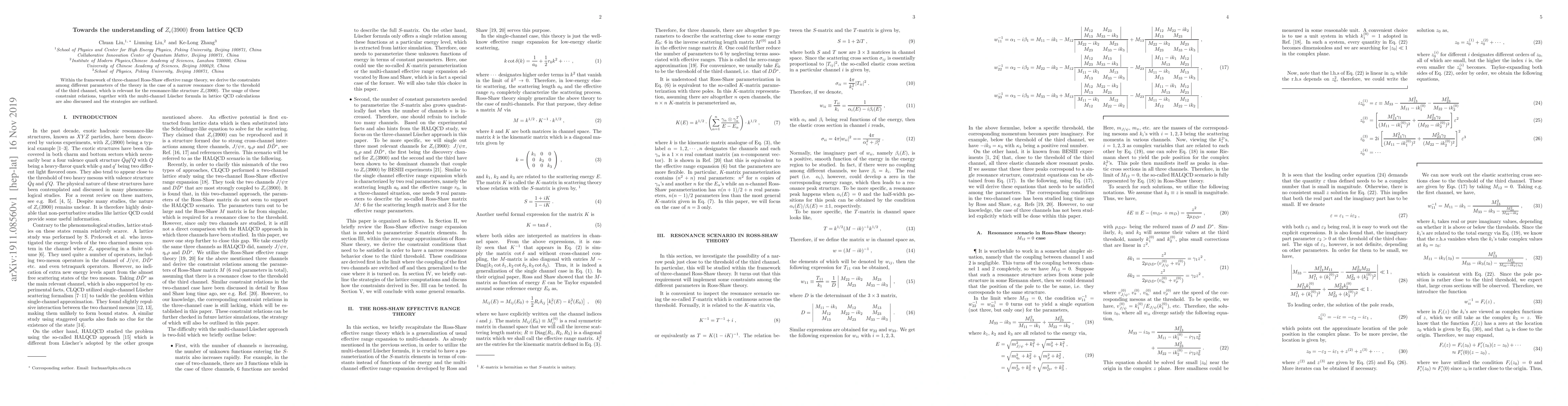 Within the framework of three-channel Ross-Shaw effective range theory, we derive the constraints among different parameters of the theory in the case of a narrow resonance close to the threshold of the third channel, which is relevant for the resonance-like structure $Z_c(3900)$. The usage of these constraint relations, together with the multi-channel L\"uscher formula in lattice QCD calculations are also discussed and the strategies are outlined.