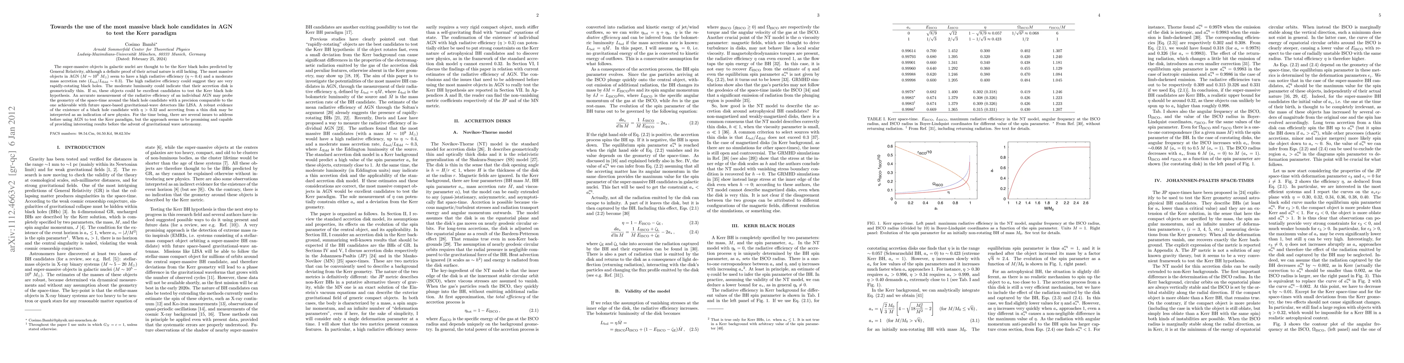 This paper explores the potential of the most massive black hole candidates in active galactic nuclei (AGN) to test the Kerr paradigm, suggesting that their high radiative efficiency and moderate luminosity make them ideal for probing the geometry of space-time around black holes. It highlights the promise of AGN as testbeds for the Kerr hypothesis before the era of gravitational wave astronomy.