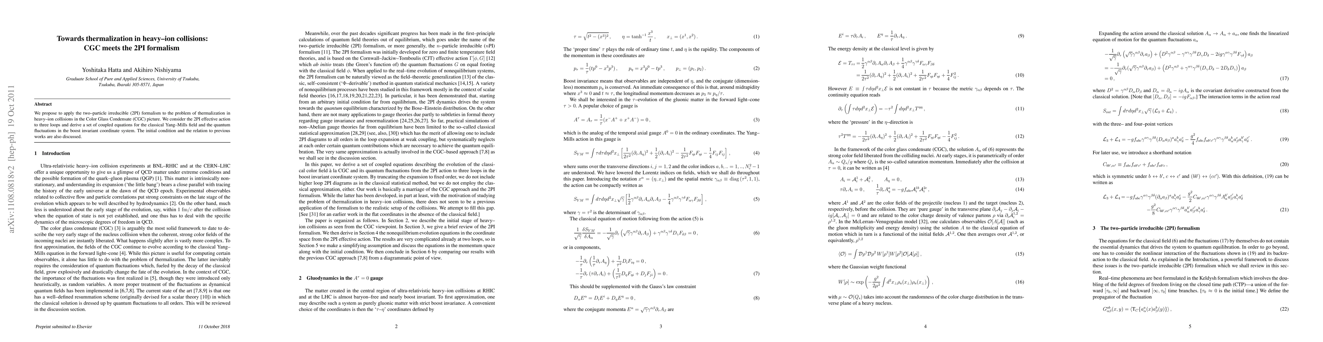 Researchers propose applying the two-particle irreducible formalism to study thermalization in heavy-ion collisions within the Color Glass Condensate framework.