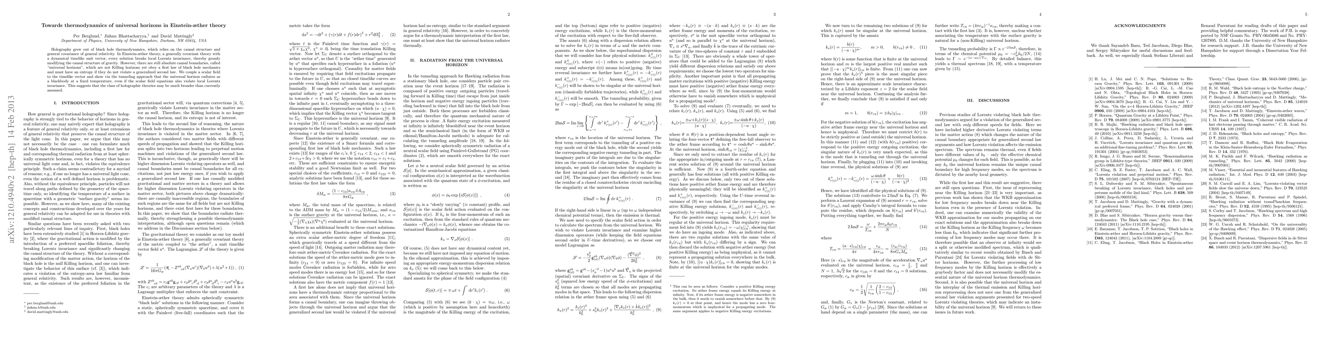 This paper explores the thermodynamics of universal horizons in Einstein-{\ae}ther theory, demonstrating that these absolute causal boundaries radiate as blackbodies, suggesting a broader scope for holographic theories beyond traditional black hole thermodynamics. The study uses the tunneling approach to show that universal horizons obey a first law of black hole mechanics and possess entropy.