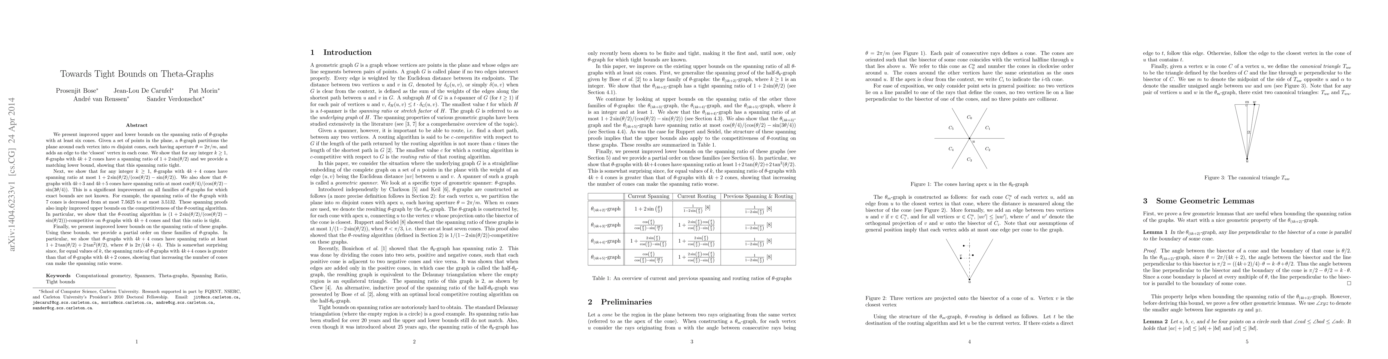 We present improved upper and lower bounds on the spanning ratio of $\theta$-graphs with at least six cones. Given a set of points in the plane, a $\theta$-graph partitions the plane around each vertex into $m$ disjoint cones, each having aperture $\theta=2\pi/m$, and adds an edge to the `closest' vertex in each cone. We show that for any integer $k \geq 1$, $\theta$-graphs with $4k+2$ cones have a spanning ratio of $1+2\sin(\theta/2)$ and we provide a matching lower bound, showing that this spanning ratio tight. Next, we show that for any integer $k \geq 1$, $\theta$-graphs with $4k+4$ cones have spanning ratio at most $1+2\sin(\theta/2)/(\cos(\theta/2)-\sin(\theta/2))$. We also show that $\theta$-graphs with $4k+3$ and $4k+5$ cones have spanning ratio at most $\cos(\theta/4)/(\cos(\theta/2)-\sin(3\theta/4))$. This is a significant improvement on all families of $\theta$-graphs for which exact bounds are not known. For example, the spanning ratio of the $\theta$-graph with 7 cones is decreased from at most 7.5625 to at most 3.5132. These spanning proofs also imply improved upper bounds on the competitiveness of the $\theta$-routing algorithm. In particular, we show that the $\theta$-routing algorithm is $(1+2\sin(\theta/2)/(\cos(\theta/2)-\sin(\theta/2)))$-competitive on $\theta$-graphs with $4k+4$ cones and that this ratio is tight. Finally, we present improved lower bounds on the spanning ratio of these graphs. Using these bounds, we provide a partial order on these families of $\theta$-graphs. In particular, we show that $\theta$-graphs with $4k+4$ cones have spanning ratio at least $1+2\tan(\theta/2)+2\tan^2(\theta/2)$. This is somewhat surprising since, for equal values of $k$, the spanning ratio of $\theta$-graphs with $4k+4$ cones is greater than that of $\theta$-graphs with $4k+2$ cones, showing that increasing the number of cones can make the spanning ratio worse.
