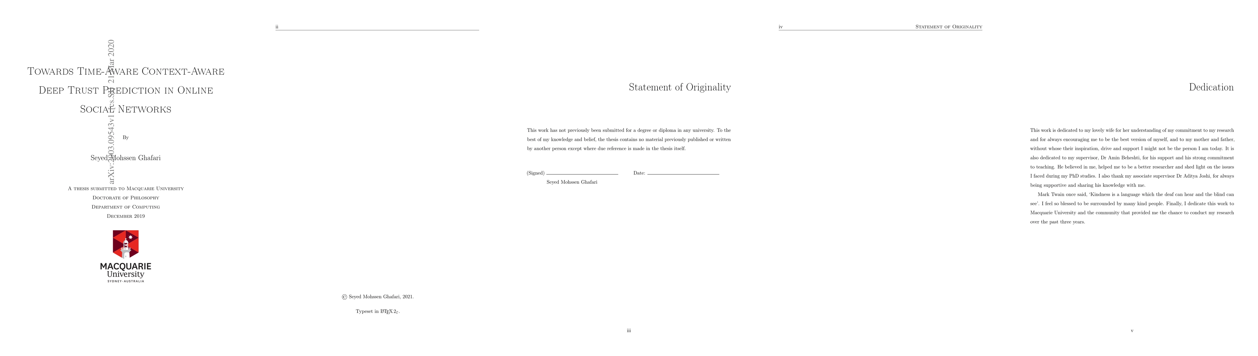 This paper proposes novel approaches for time-aware, context-aware deep trust prediction in Online Social Networks, addressing challenges like trust sparsity, context-awareness, and temporal changes. It introduces low-rank representations, context-aware models, and dynamic deep trust prediction methods, demonstrating superior performance through experiments on real-world datasets.