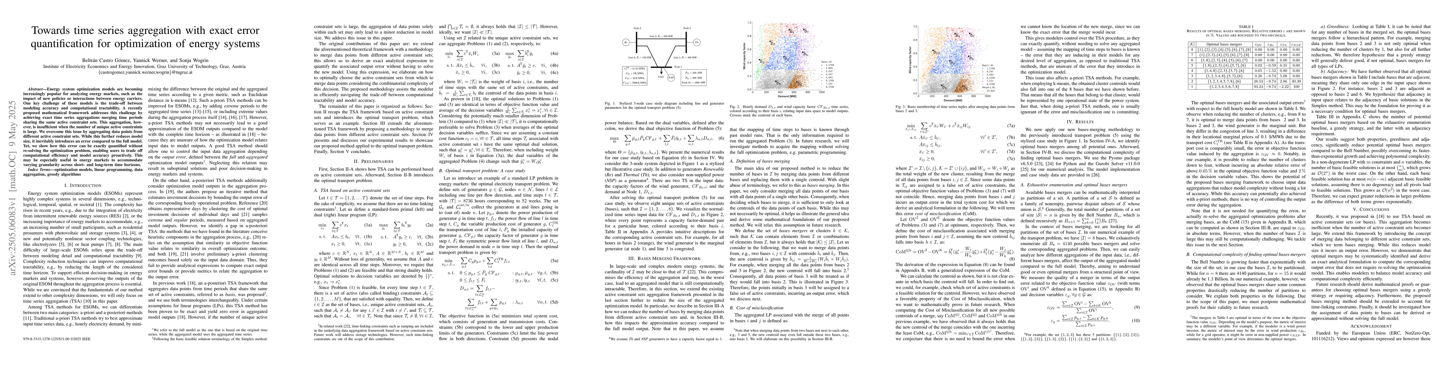 The paper presents a novel mathematical framework for time series aggregation with exact error quantification in energy system optimization models.