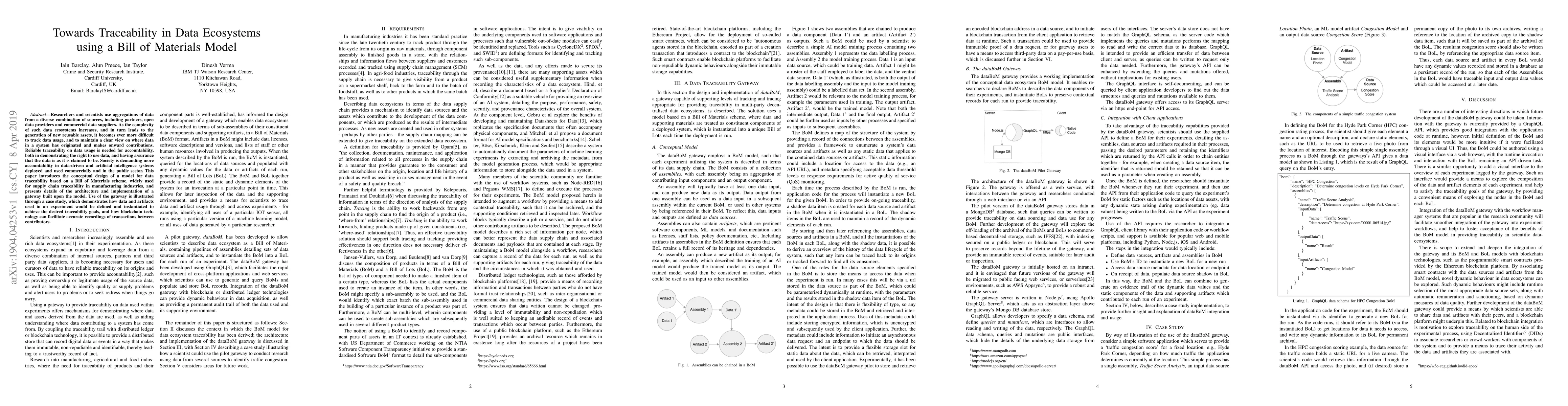 This paper proposes a Bill of Materials model for enhancing traceability in complex data ecosystems, aiming to ensure accountability and data provenance. It introduces a conceptual design and architecture for a traceability gateway, supported by a case study and blockchain technology to record transactions accurately.