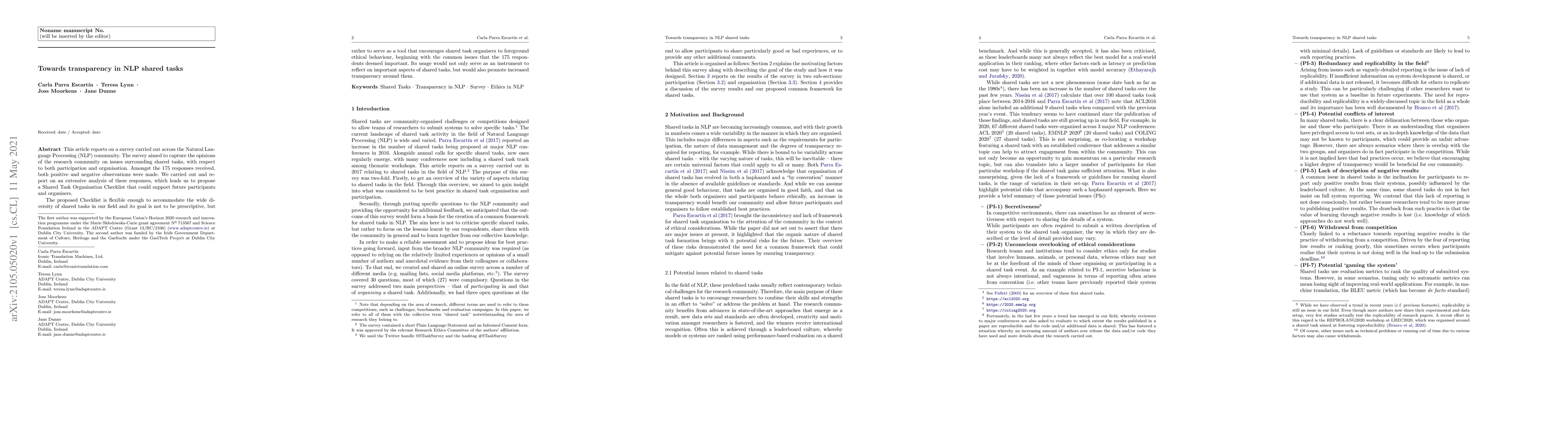 This article reports on a survey carried out across the Natural Language Processing (NLP) community. The survey aimed to capture the opinions of the research community on issues surrounding shared tasks, with respect to both participation and organisation. Amongst the 175 responses received, both positive and negative observations were made. We carried out and report on an extensive analysis of these responses, which leads us to propose a Shared Task Organisation Checklist that could support future participants and organisers. The proposed Checklist is flexible enough to accommodate the wide diversity of shared tasks in our field and its goal is not to be prescriptive, but rather to serve as a tool that encourages shared task organisers to foreground ethical behaviour, beginning with the common issues that the 175 respondents deemed important. Its usage would not only serve as an instrument to reflect on important aspects of shared tasks, but would also promote increased transparency around them.