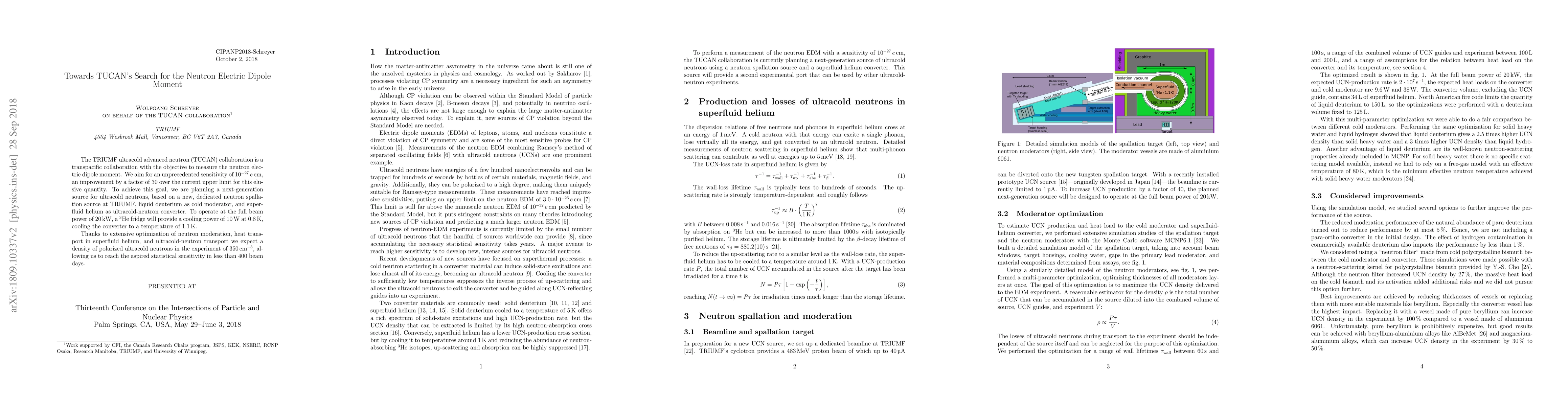 The TUCAN collaboration aims to measure the neutron electric dipole moment with unprecedented sensitivity, improving the current upper limit by a factor of 30. They plan to achieve this using a next-generation ultracold neutron source, incorporating a dedicated neutron spallation source, liquid deuterium, and superfluid helium.