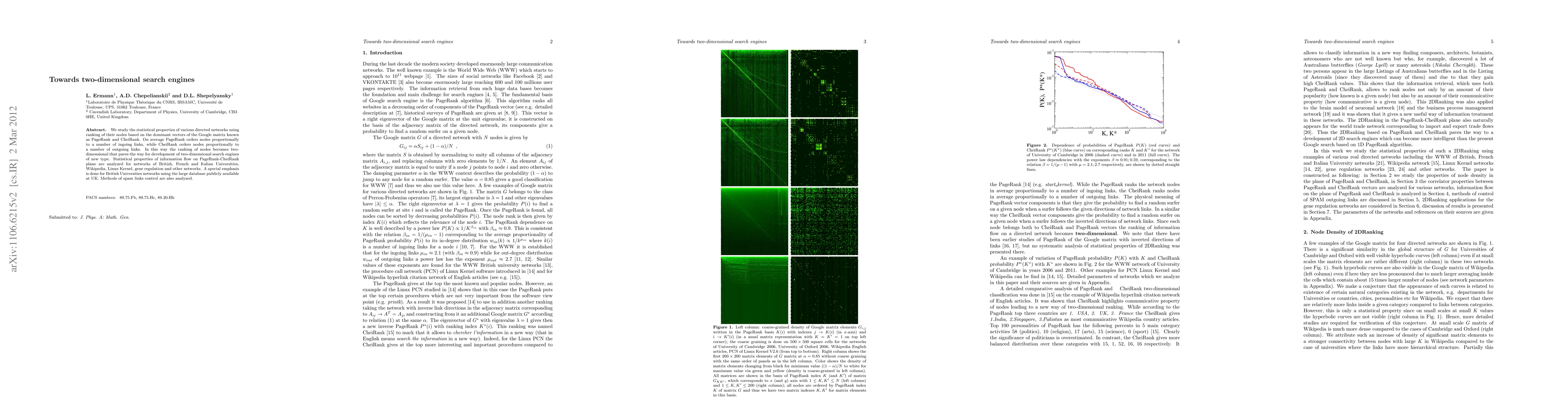 Researchers develop a new approach for two-dimensional search engines by analyzing network rankings using PageRank and CheiRank, finding that ranking nodes is proportional to ingoing/outgoing links. This 2D search engine concept has implications for controlling spam links and understanding information flow in various networks.