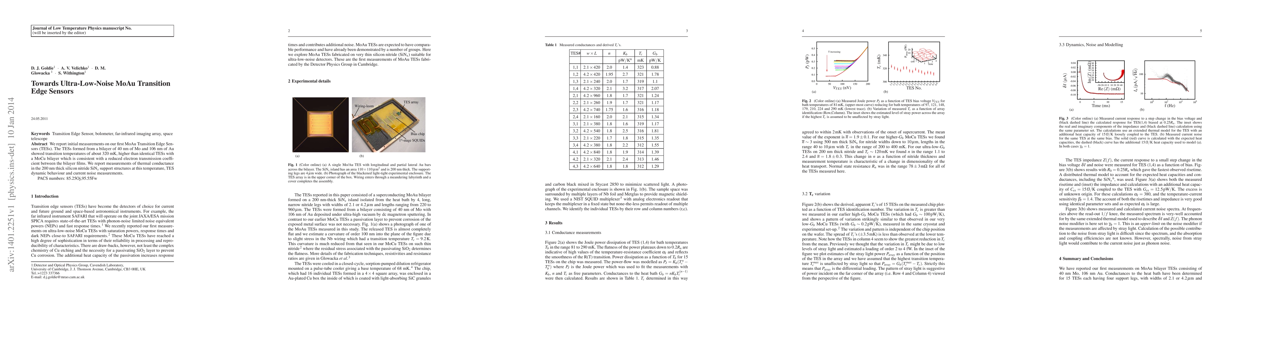 We report initial measurements on our firstMoAu Transition Edge Sensors (TESs). The TESs formed from a bilayer of 40 nm of Mo and 106 nm of Au showed transition temperatures of about 320 mK, higher than identical TESs with a MoCu bilayer which is consistent with a reduced electron transmission coefficient between the bilayer films. We report measurements of thermal conductance in the 200 nm thick silicon nitride SiNx support structures at this temperature, TES dynamic behaviour and current noise measurements.