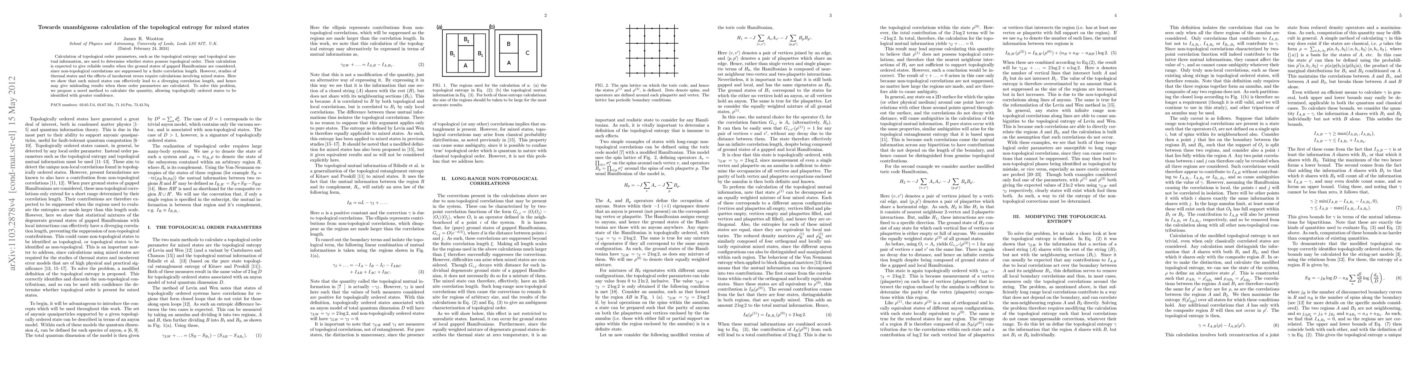 Researchers found that calculating topological entropy for mixed states can lead to misleading results due to a diverging correlation length, but proposed a new method to accurately identify topologically ordered states.