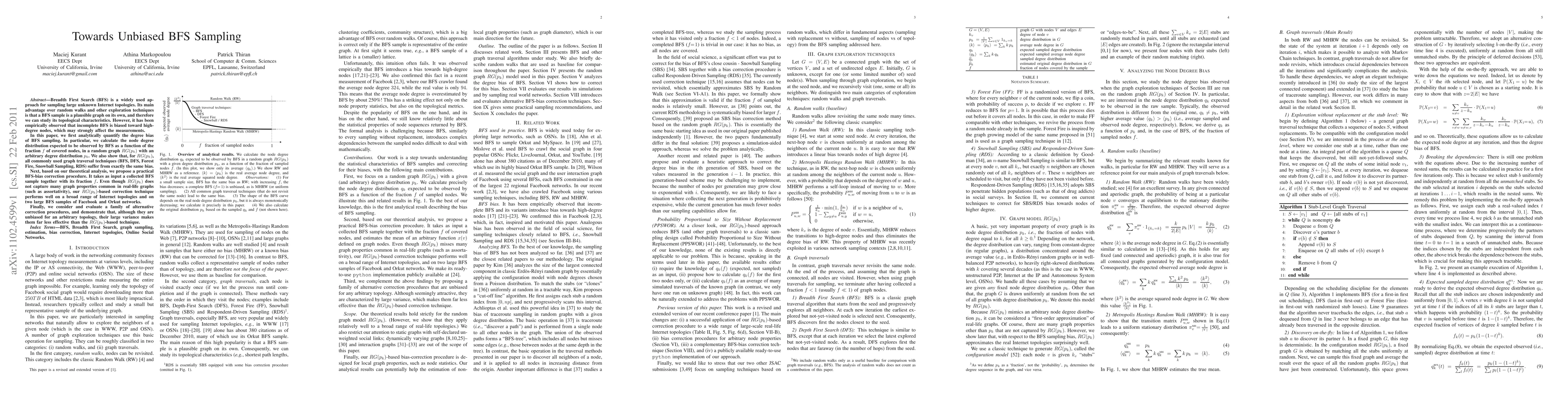 Researchers found that Breadth First Search (BFS) sampling is biased towards high-degree nodes, but developed a practical correction technique to mitigate this bias, outperforming alternative methods in evaluating Internet topologies.