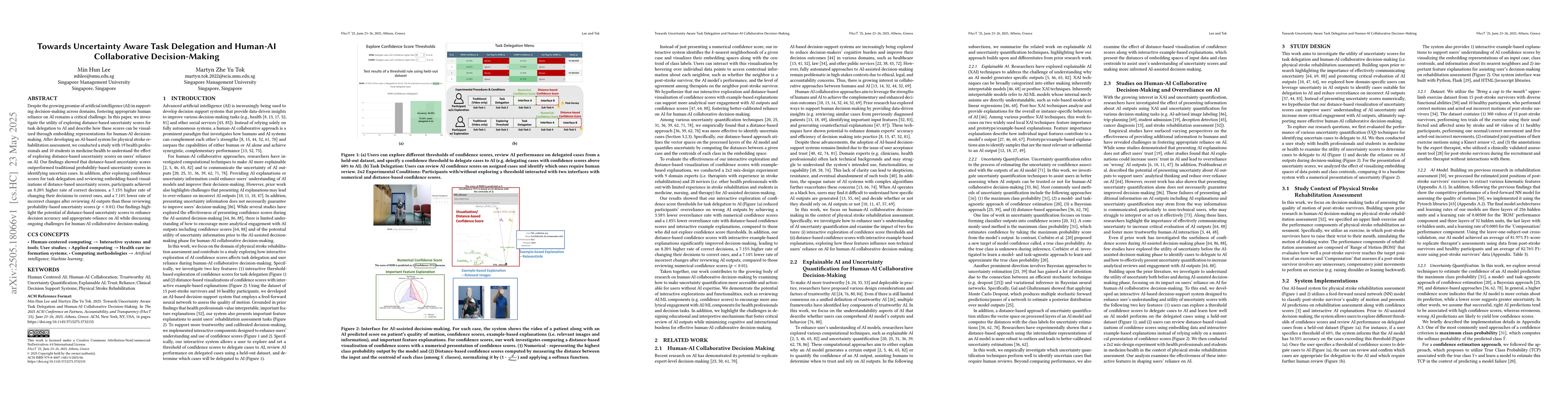 Researchers developed a system to visualize uncertainty scores for task delegation in human-AI collaboration, finding that these scores improve decision accuracy and reliance on AI. Participants made 8.20% more correct decisions after reviewing distance-based uncertainty scores than probability-based scores.