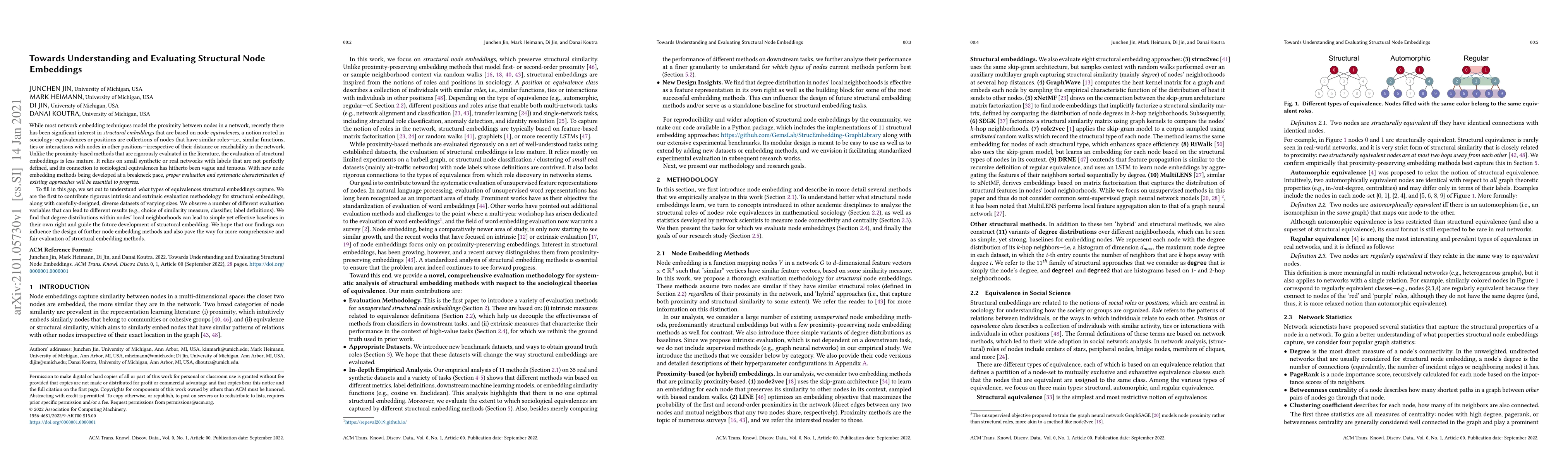 The work is novel in its systematic characterization of existing structural embedding approaches, focusing on understanding the types of equivalences they capture, and its contribution to a more mature evaluation framework for structural node embeddings.