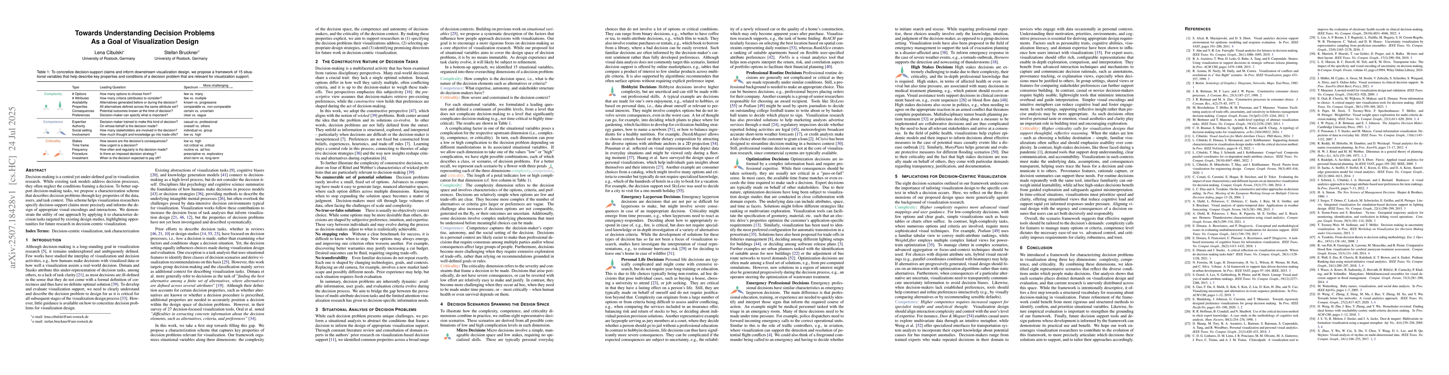 Decision-making is a central yet under-defined goal in visualization research. While existing task models address decision processes, they often neglect the conditions framing a decision. To better support decision-making tasks, we propose a characterization scheme that describes decision problems through key properties of the data, users, and task context. This scheme helps visualization researchers specify decision-support claims more precisely and informs the design of appropriate visual encodings and interactions. We demonstrate the utility of our approach by applying it to characterize decision tasks targeted by existing design studies, highlighting opportunities for future research in decision-centric visualization.