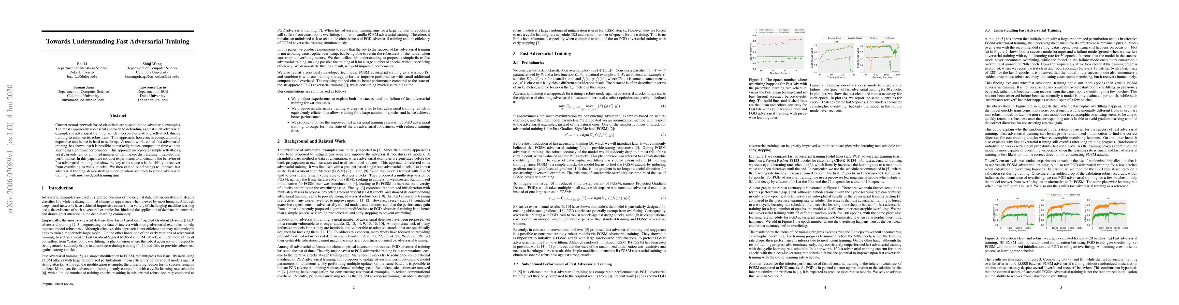 This paper investigates fast adversarial training, a computationally efficient method to enhance neural network robustness against adversarial examples, by analyzing its recovery from overfitting to weak attacks. The authors extend these findings to improve the method, achieving better robust accuracy while significantly reducing training time compared to traditional adversarial training.