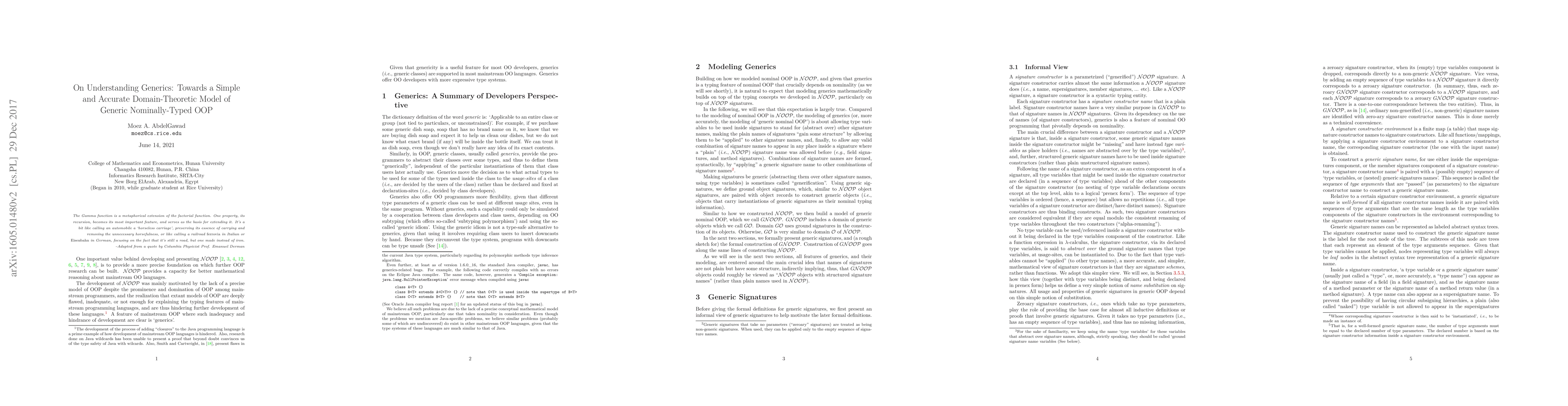 This paper explores the development of a domain-theoretic model for generic nominally-typed object-oriented programming (OOP), aiming for simplicity and accuracy in understanding generics within mainstream OOP. The proposed model seeks to provide a robust framework for handling generic types effectively.