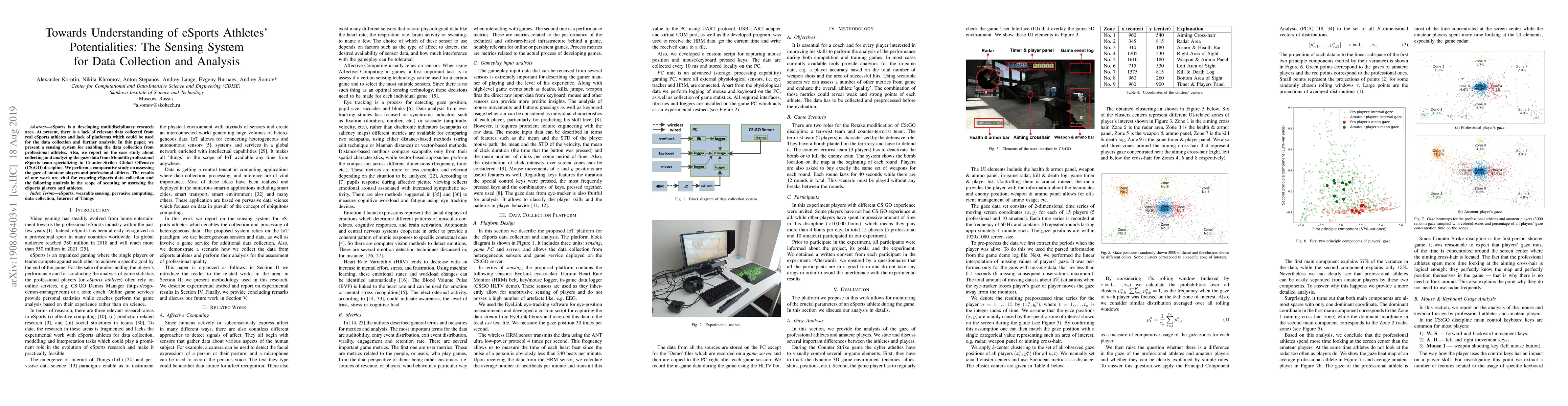 eSports is a developing multidisciplinary research area. At present, there is a lack of relevant data collected from real eSports athletes and lack of platforms which could be used for the data collection and further analysis. In this paper, we present a sensing system for enabling the data collection from professional athletes. Also, we report on the case study about collecting and analyzing the gaze data from Monolith professional eSports team specializing in Counter-Strike: Global Offensive (CS:GO) discipline. We perform a comparative study on assessing the gaze of amateur players and professional athletes. The results of our work are vital for ensuring eSports data collection and the following analysis in the scope of scouting or assessing the eSports players and athletes.