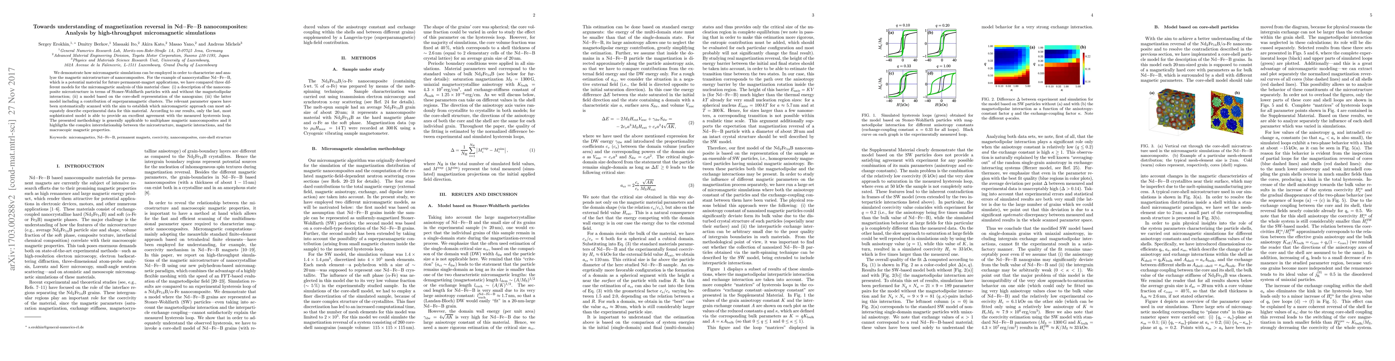 This paper explores the magnetization reversal in Nd-Fe-B nanocomposites using high-throughput micromagnetic simulations. The study finds that the most sophisticated model, incorporating superparamagnetic clusters, best matches experimental data, highlighting the complex interplay between microstructure, magnetic interactions, and macroscopic properties.