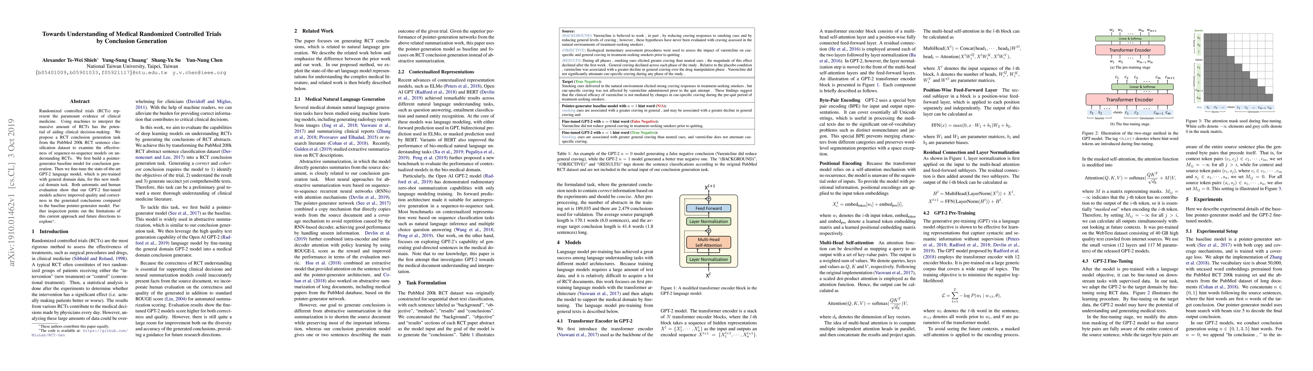 Randomized controlled trials (RCTs) represent the paramount evidence of clinical medicine. Using machines to interpret the massive amount of RCTs has the potential of aiding clinical decision-making. We propose a RCT conclusion generation task from the PubMed 200k RCT sentence classification dataset to examine the effectiveness of sequence-to-sequence models on understanding RCTs. We first build a pointer-generator baseline model for conclusion generation. Then we fine-tune the state-of-the-art GPT-2 language model, which is pre-trained with general domain data, for this new medical domain task. Both automatic and human evaluation show that our GPT-2 fine-tuned models achieve improved quality and correctness in the generated conclusions compared to the baseline pointer-generator model. Further inspection points out the limitations of this current approach and future directions to explore.