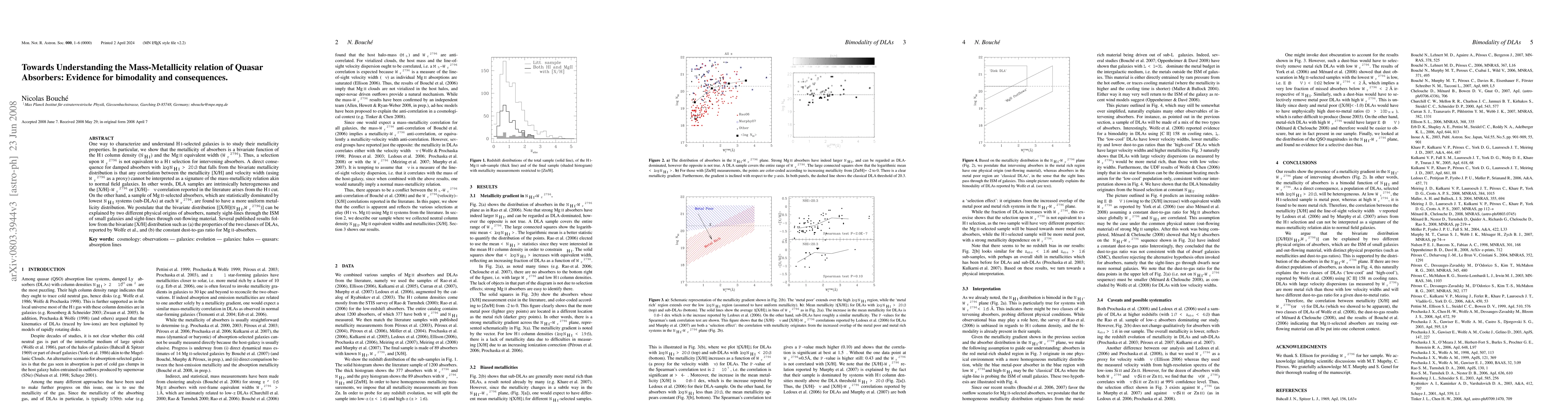 This paper explores the mass-metallicity relation in quasar absorbers, revealing a bivariate metallicity distribution dependent on HI column density and MgII equivalent width. It suggests that DLAs with high HI column density are not representative of the mass-metallicity relation in normal galaxies, while MgII-selected absorbers have a more uniform metallicity distribution, indicating two distinct physical origins for absorbers.