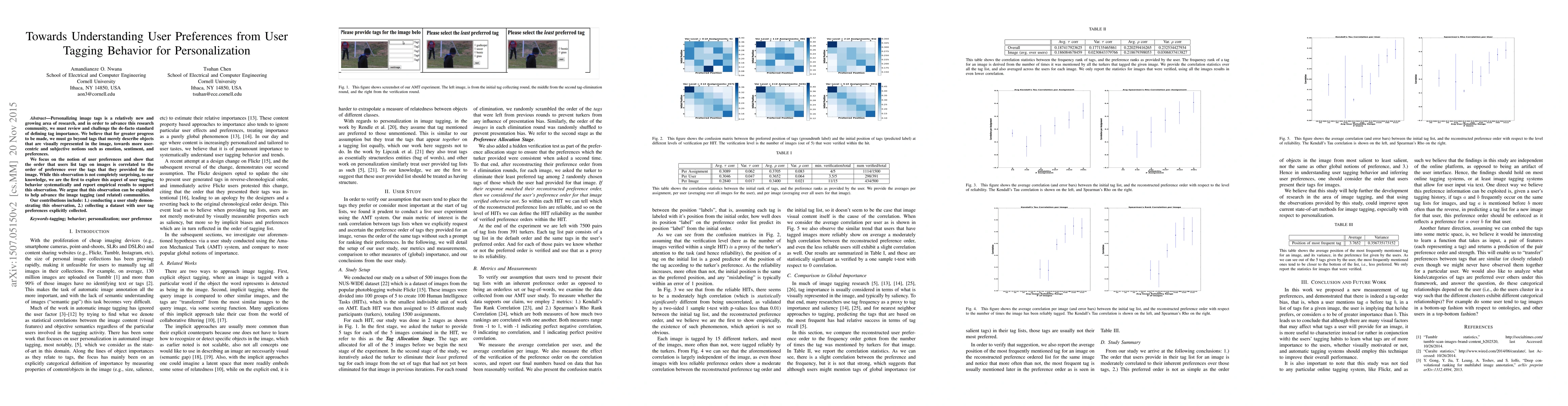 This paper investigates how user-listed tag order correlates with their preferences, suggesting a new method for personalizing image tags. The study reveals that users' tagging sequence reflects their preference order, offering a novel approach to advance the field of image tagging.
