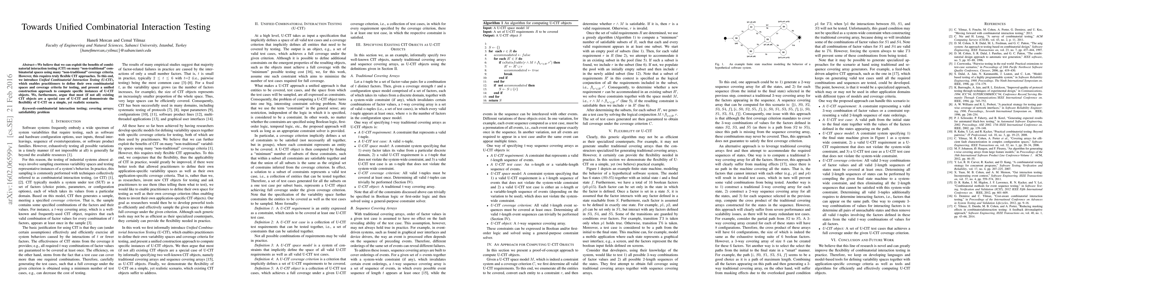 This paper introduces Unified Combinatorial Interaction Testing (U-CIT), a flexible framework allowing the definition of custom combinatorial spaces and coverage criteria for testing. It argues that existing CIT methods are special cases of U-CIT and demonstrates its flexibility through a practical example.