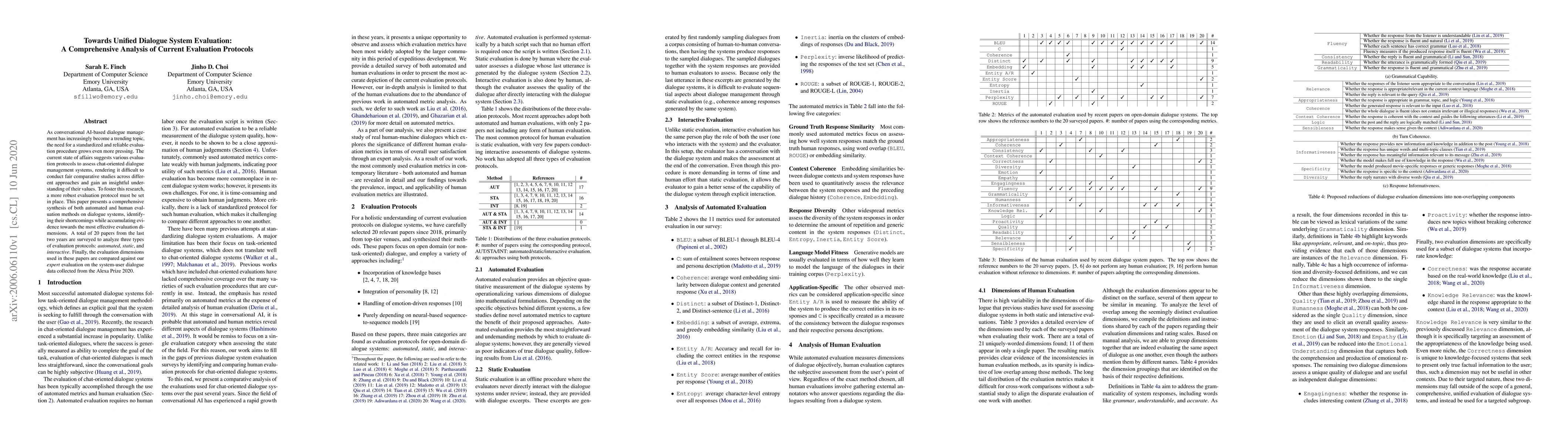 This paper synthesizes current evaluation protocols for dialogue systems, highlighting their limitations and proposing a unified approach for more effective assessment. It surveys 20 recent papers to analyze automated, static, and interactive evaluation methods, and compares these against expert evaluations based on Alexa Prize 2020 data.