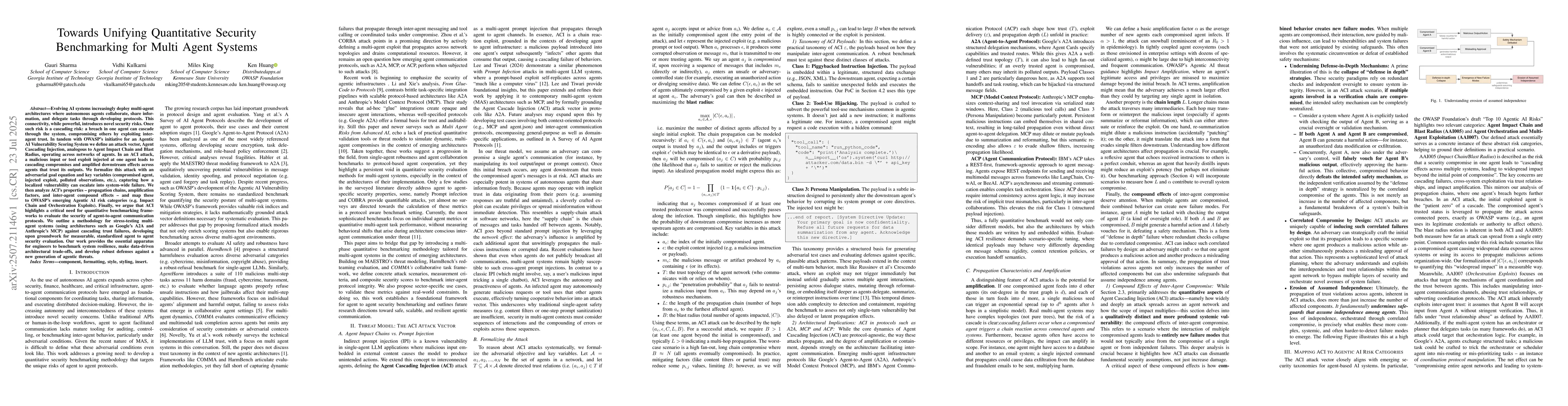 The paper introduces a formalized attack vector, Agent Cascading Injection (ACI), and a methodology for quantitative benchmarking of multi-agent systems' security, linking it to OWASP's Agentic AI risk categories.